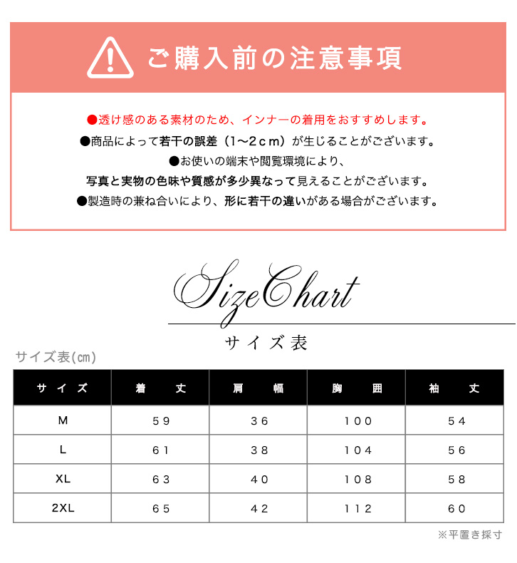 (※透け感のある素材の為、インナーの着用をおすすめします。)