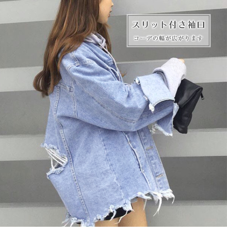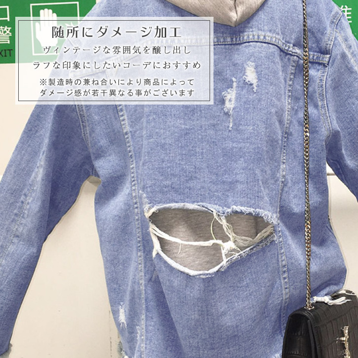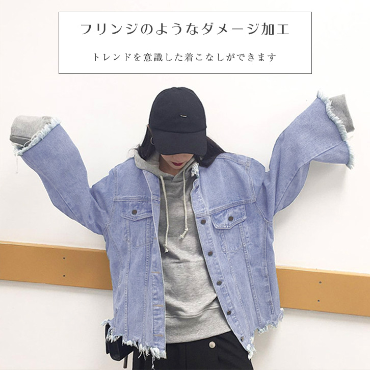 ジャケット アウター デニム デニムジャケット レディース シンプル フリンジ トレンド ダメージ加工 快適 着心地抜群 大人カジュアル 合わせやすい 着回し抜群 ヴィンテージ風 ラフ ストリート スリット オシャレ かわいい