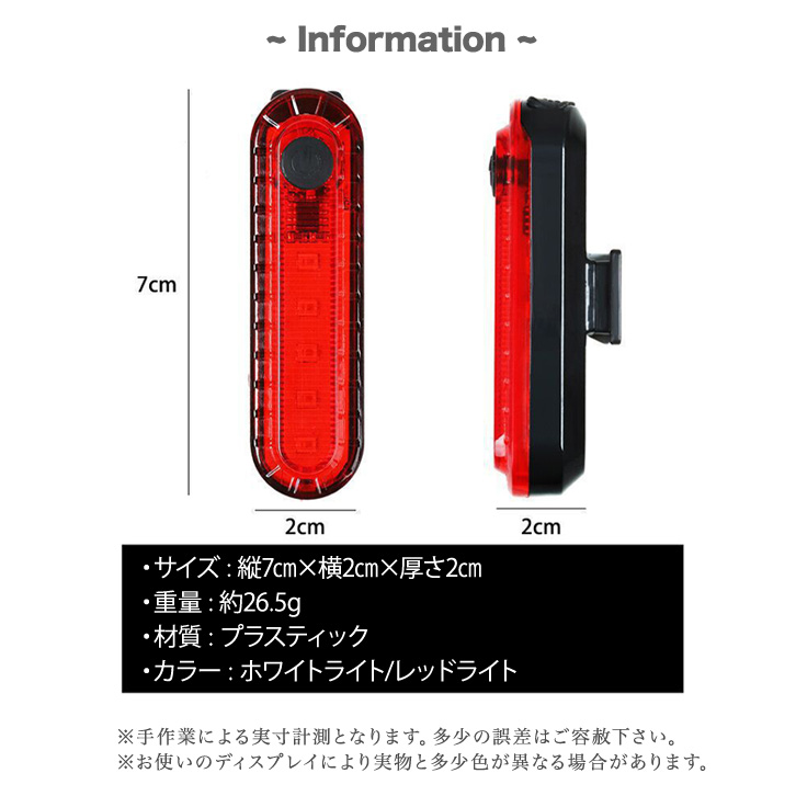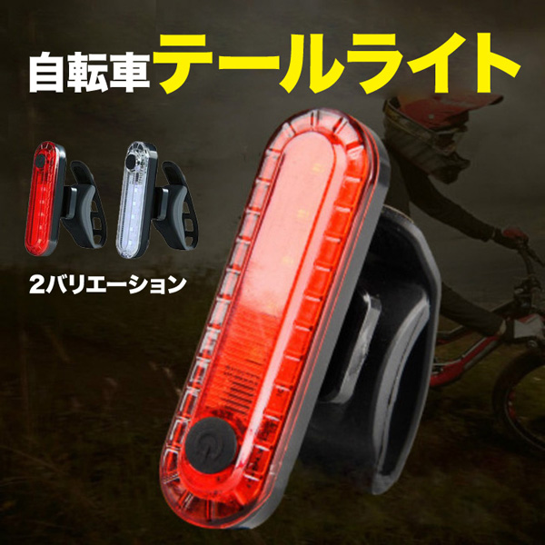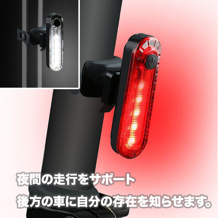 自転車ライト 自転車 ライト テールライト 自転車テールライト レッド ホワイト USB充電 明るい 点灯 夜間も安心 安全 自転車用 ハンドル取り付け可能 サイクルライト 自転車用ライト 前 後ろ フロント ヘルメット