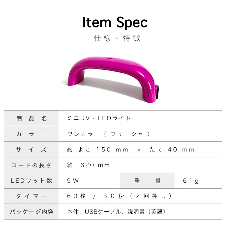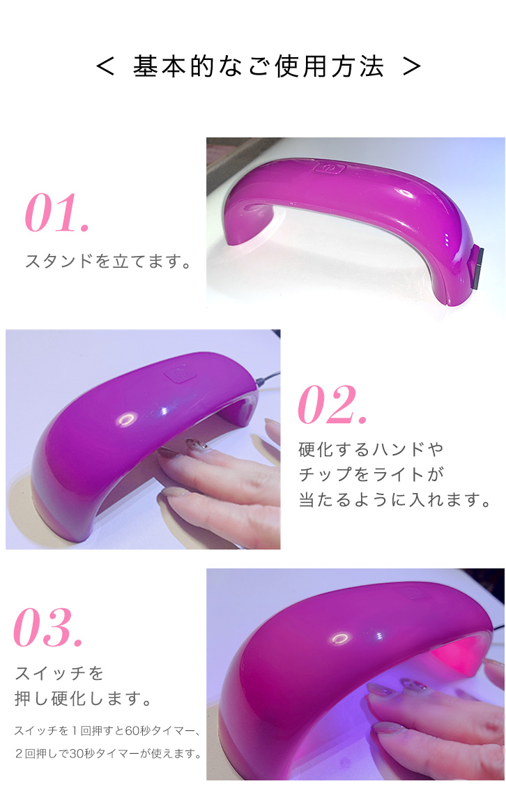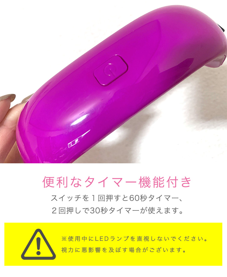 UVライト LEDライト ジェルネイルライト ジェルネイル コンパクト 軽量 持ち運びラクラク 高速硬化 タイマー機能 USBコード接続 モバイルバッテリー対応 60秒 30秒 ミニUVライト ミニLEDライト ネイル USB対応
