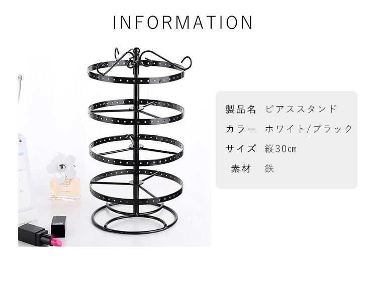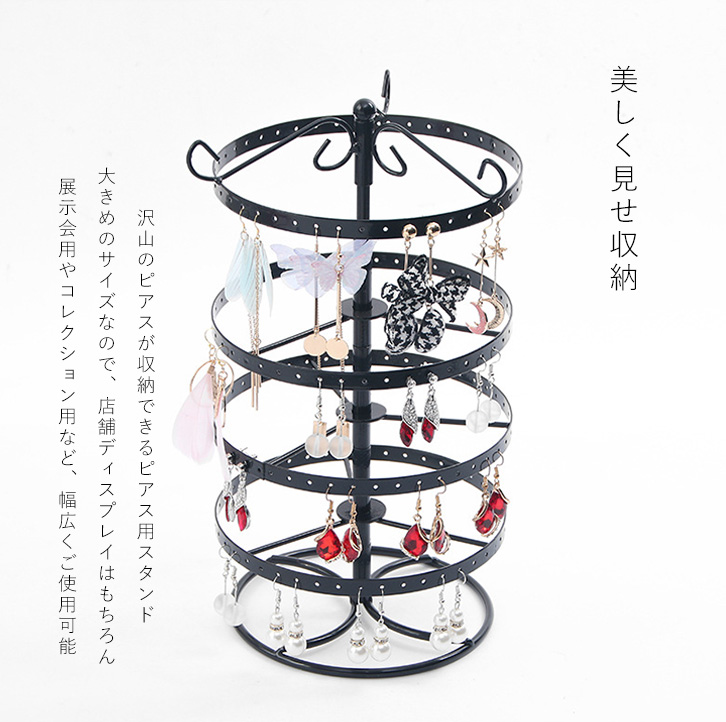 ピアススタンド ピアス収納 収納スタンド アクセサリー収納 すっきり収納 ピアスホルダー 回転式 見やすい 使いやすい 探しやすい 大容量 ディスプレイ おしゃれ 見せる収納 スタンド ホワイト ブラック 大容量収納 収納 ピアス掛け