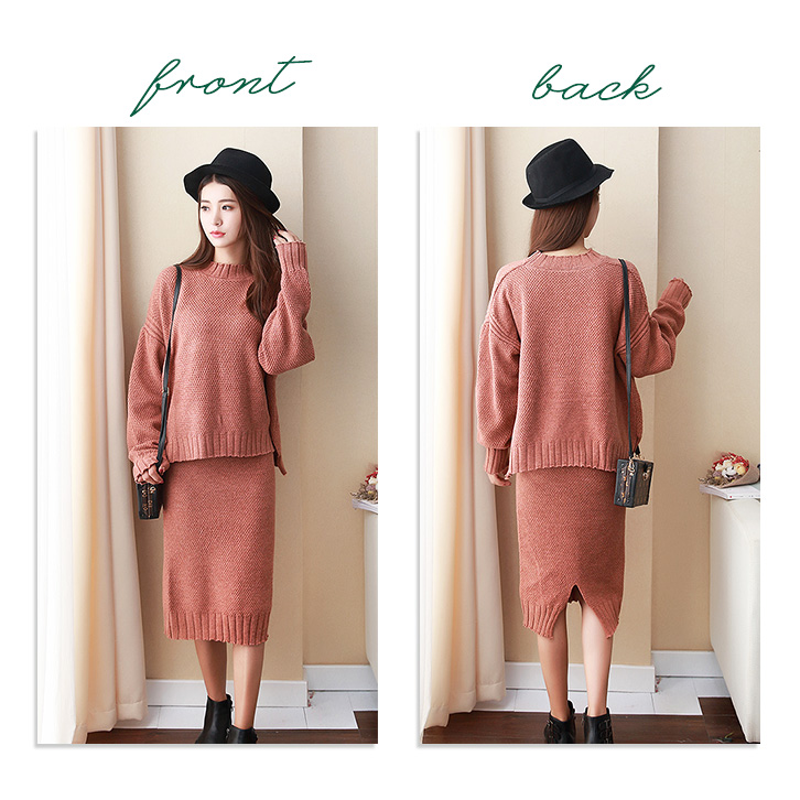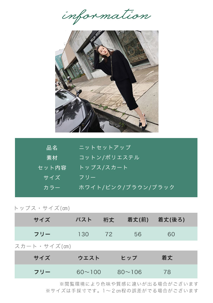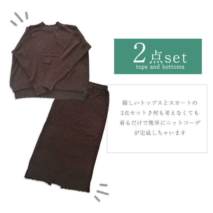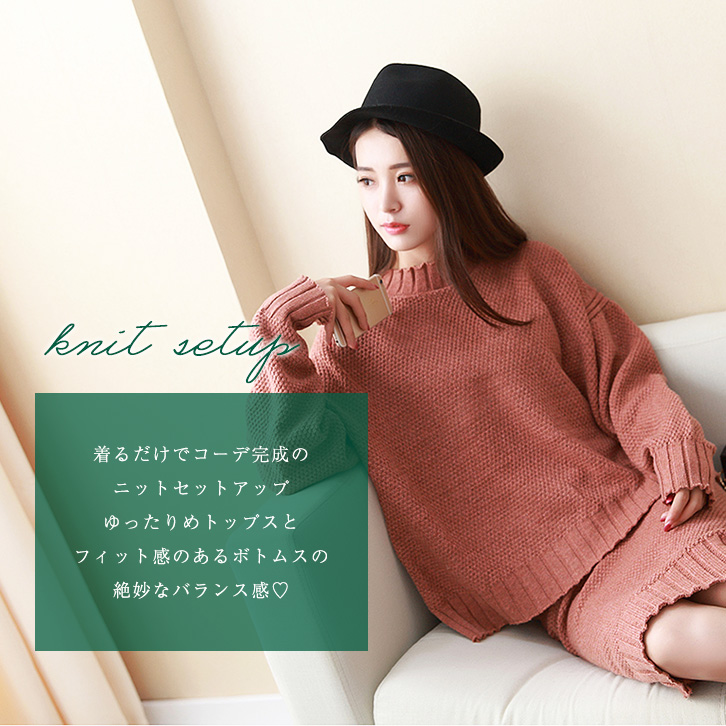 セットアップ ニットセットアップ ニット スカート 膝丈 膝下 長袖 上下セット フリーサイズ シンプル 無地 フィット感 2点セット リブ袖 リブ裾 ボトルネック バックスリット入り ホワイト ピンク ブラウン ブラック おしゃれ トレンド