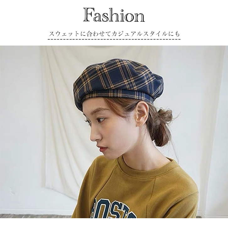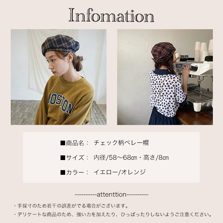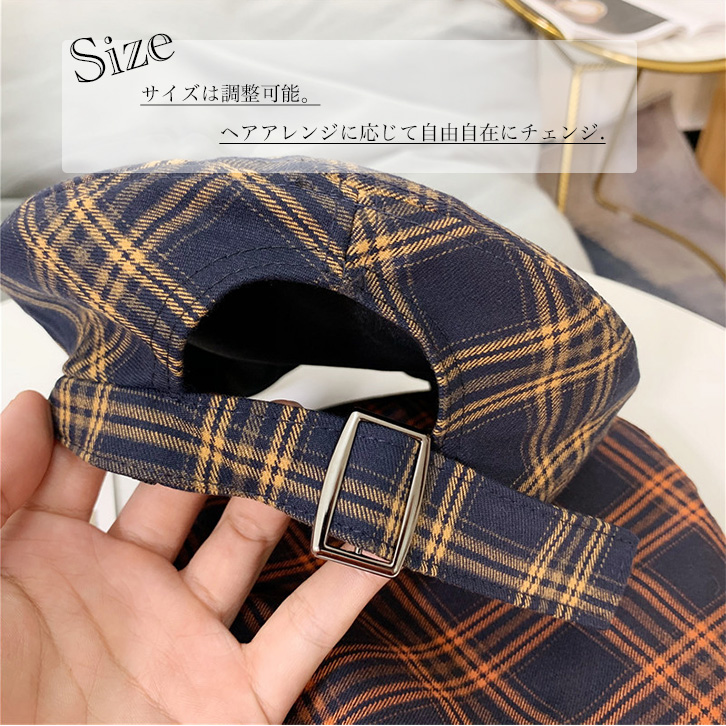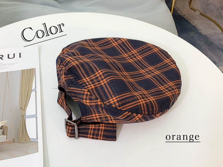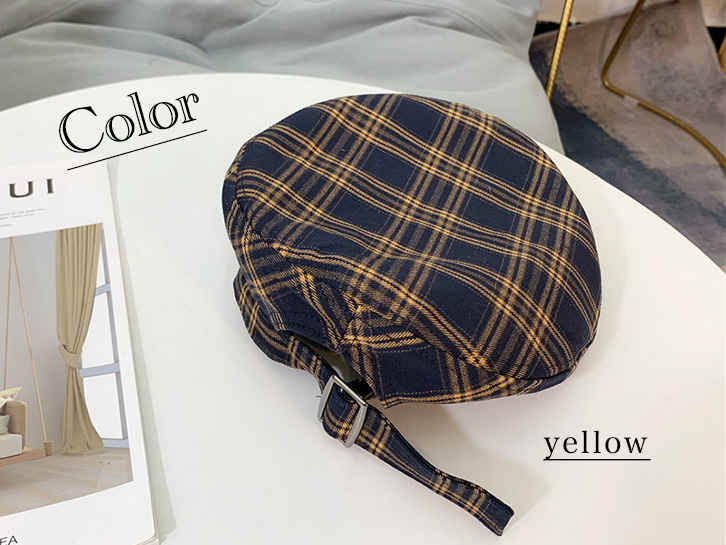 ベレー帽 レディース 帽子 チェック柄 チェックベレー帽 チェック柄ベレー帽 イエロー オレンジ カジュアル かわいい おしゃれ 大人カジュアル サイズ調節可能 シック 可愛い クラシカル 定番 ぼうし レディース帽子