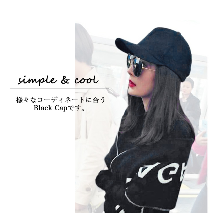 色々なコーディネートにも合わせやすい黒色キャップ♪