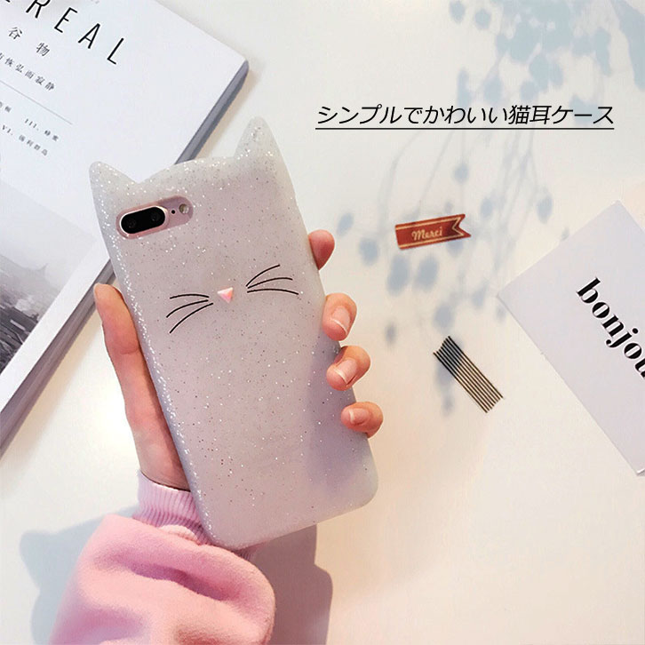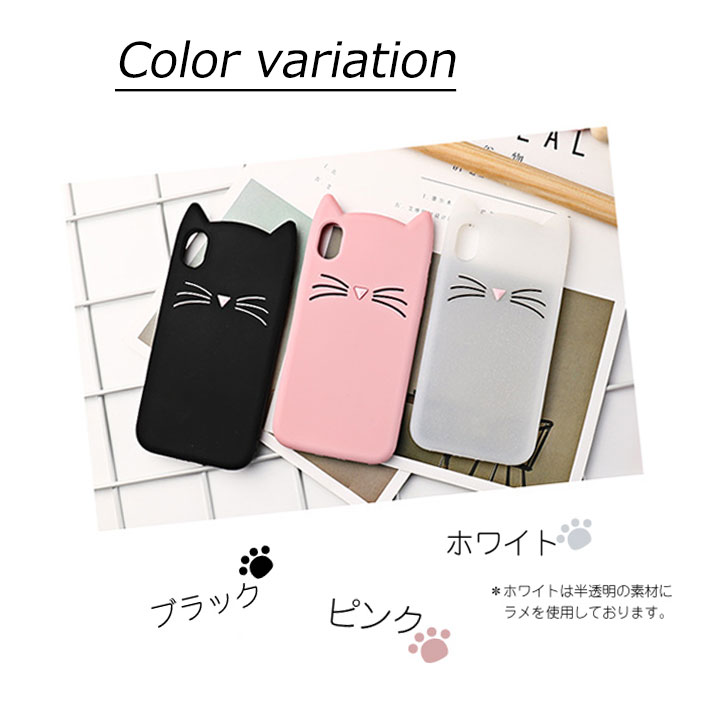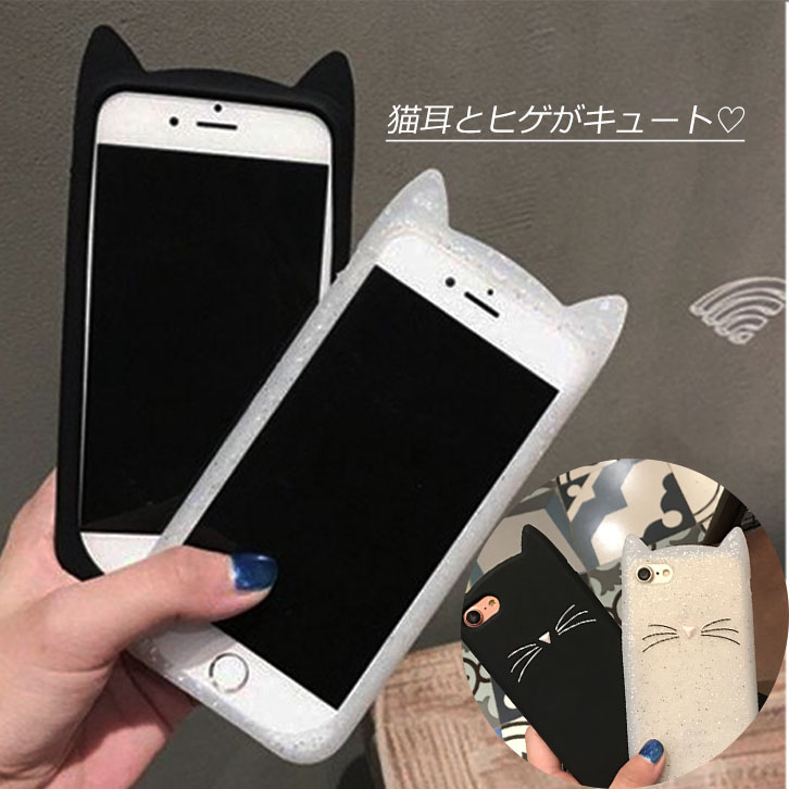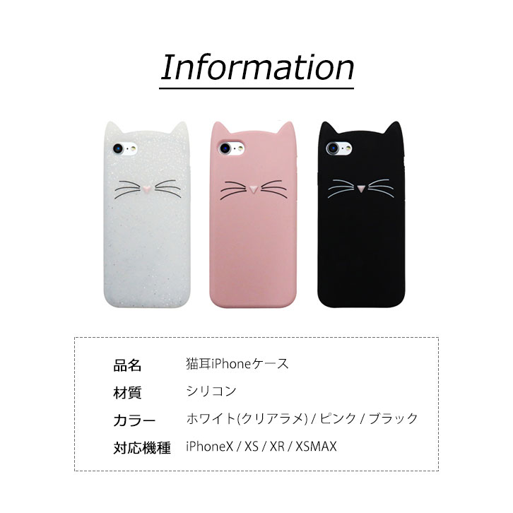 アイフォンケース スマホケース ネコ耳 シリコン素材 猫モチーフ かわいい ラメ ブラック ホワイト ピンク 対応XS/XR/XSMAX