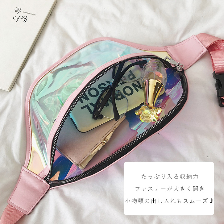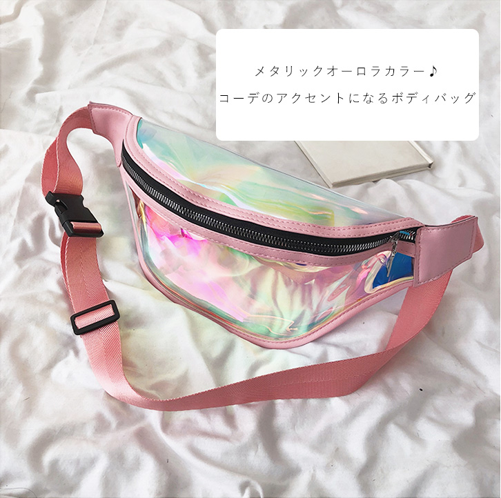 バッグ ショルダーバッグ ボディバッグ レディースバッグ メタリック SNS映え ウエストポーチ ワンタッチ フェス 旅行 コンパクト トレンド カジュアル ななめ掛け 肩かけ 旬 小物入れ オーロラ ピンク ブルー パープル