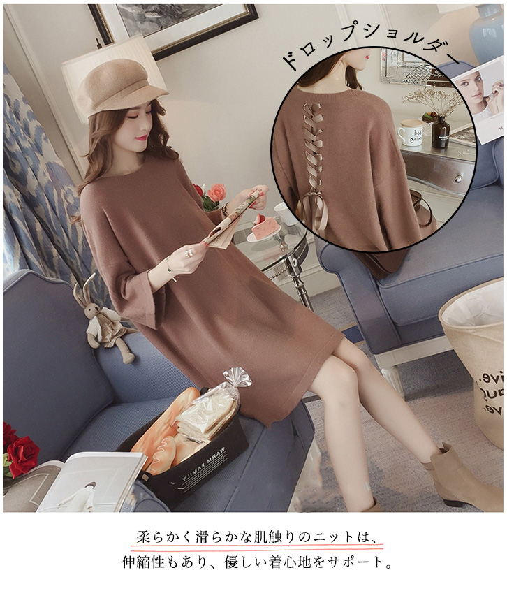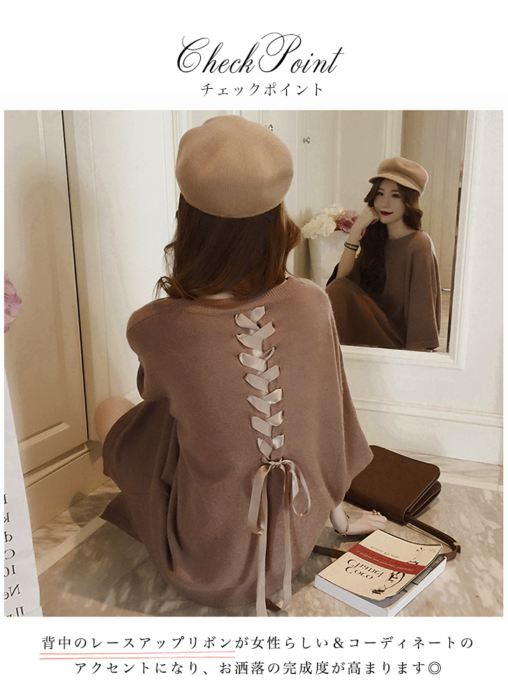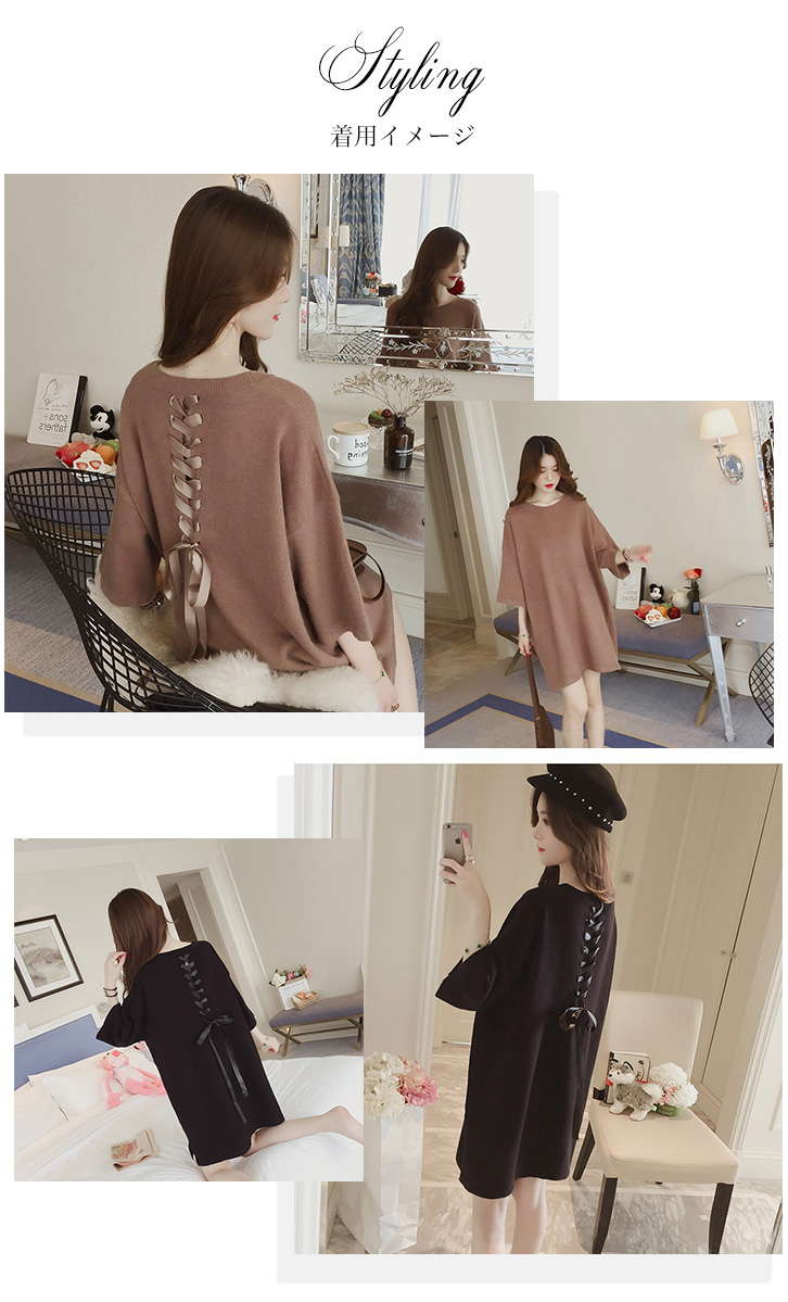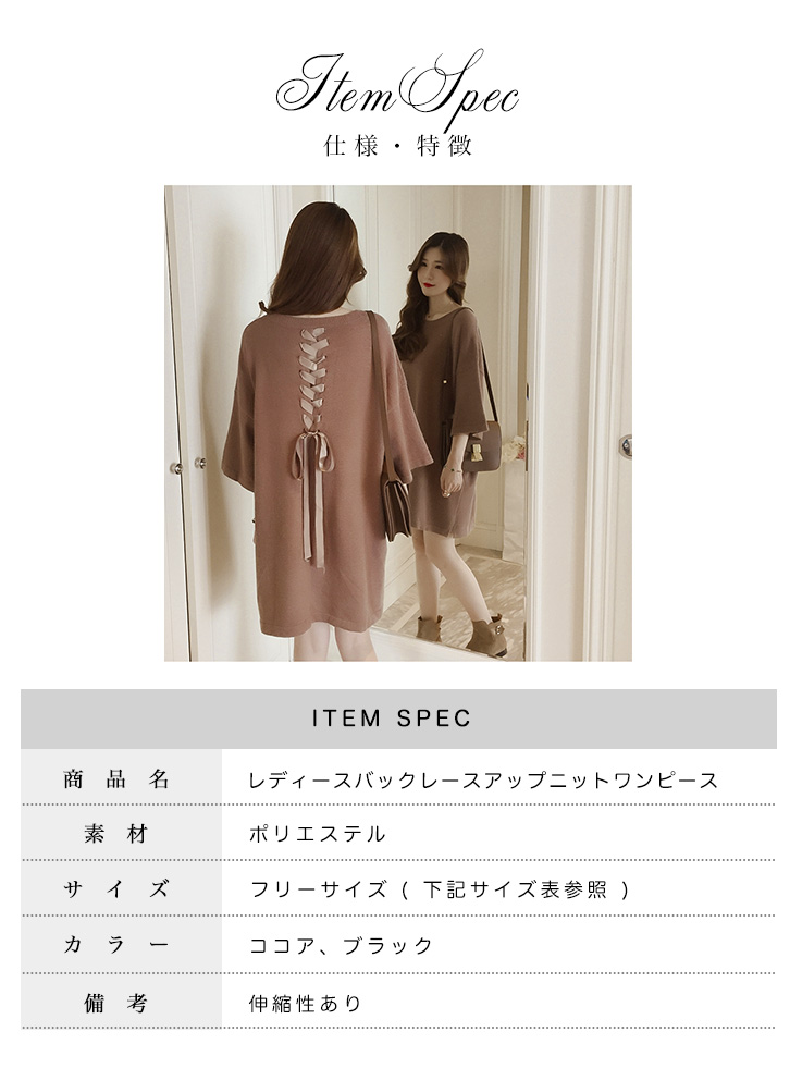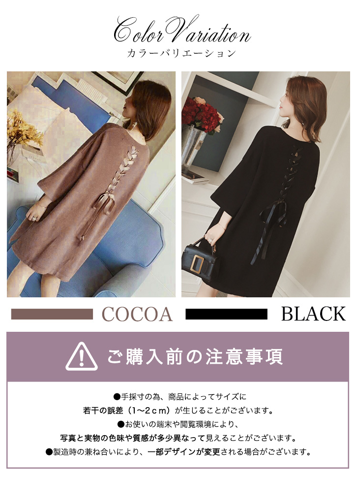 ワンピース レディース ワンピ レディースワンピ 膝上丈 ミニ丈 ゆったりシルエット バックリボン レースアップリボン かわいい フェミニン 女子力アップ おしゃれ キュート 体型カバー ドロップショルダー 着心地抜群 ココア ブラック