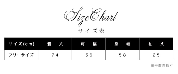 着丈74、肩幅56、身幅58、袖丈25