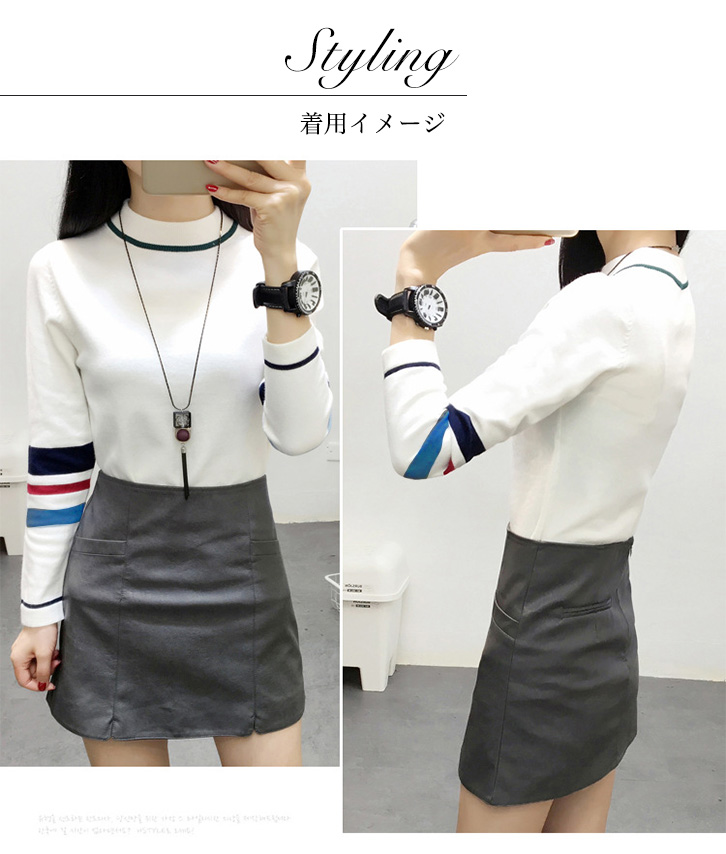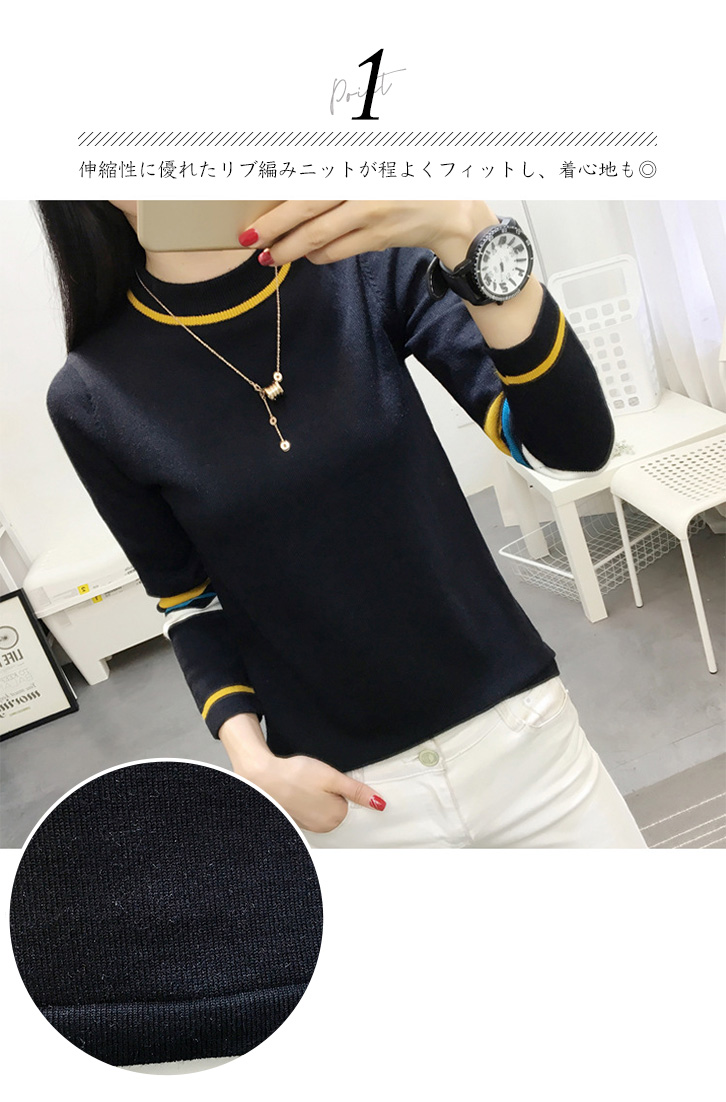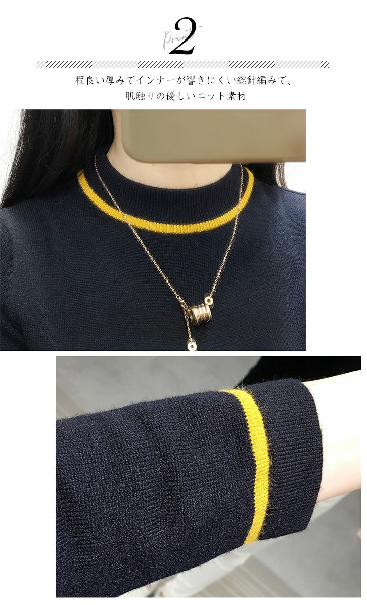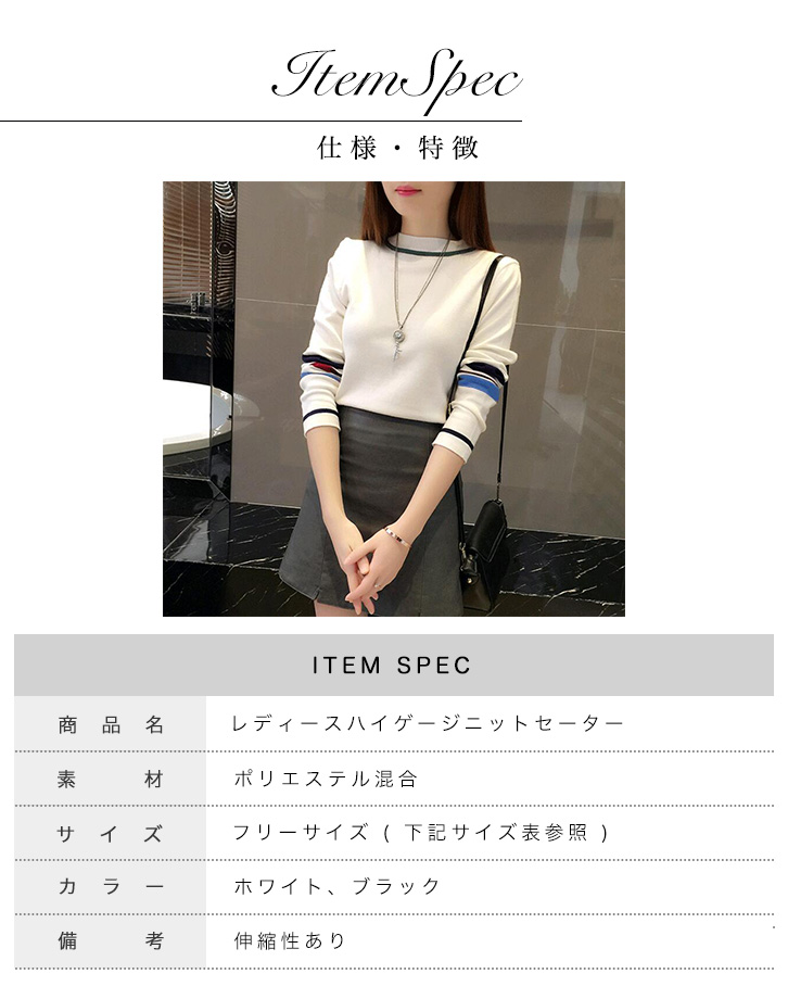 ニット セーター レディース シンプル きれいめ 着心地抜群 リブ編み 肌触り抜群 大人かわいい 着回し抜群 合わせやすい ライン入り ライン ハイゲージニット フリーサイズ ホワイト ブラック 綺麗め オフィスカジュアル