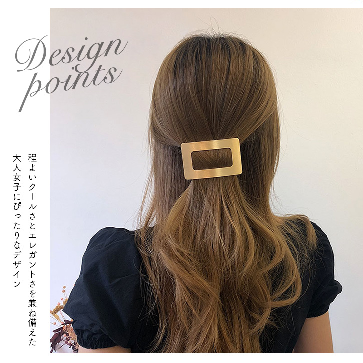 バレッタ 髪留め ヘアバレッタ ヘアアレンジ ゴールド シンプル 合わせやすい アクセント 映え メタル メタルバレッタ ゴールドバレッタ 髪飾り ヘアー オフィス かわいい 大人かわいい きれいめ カジュアル 上品