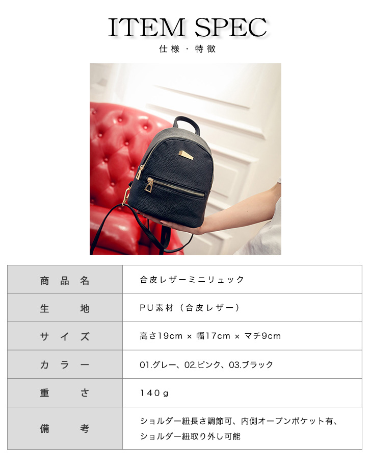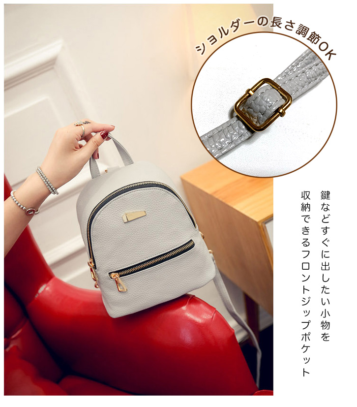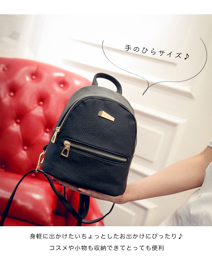レザーリュック ミニリュック リュック レザー ミニ PUレザー コンパクト 小さめ かわいい 大人リュク 軽量 上品 女子力 旅行 ブラック グレー ピンク ゴールドファスナー フェイクレザー 小物入れ シンプル カバン 鞄 リュックサック