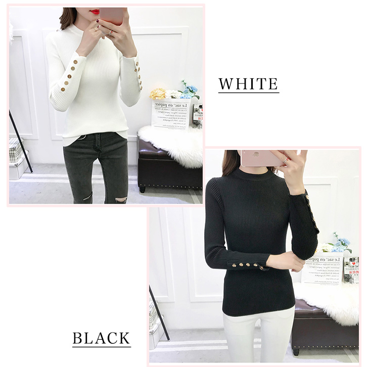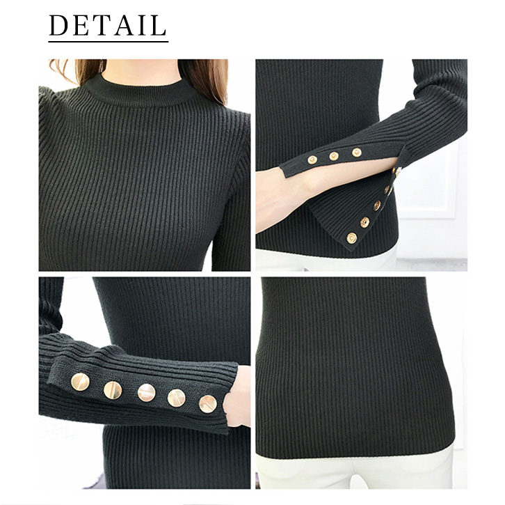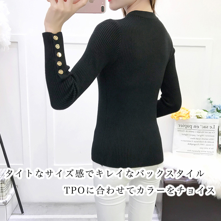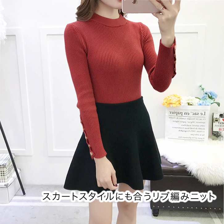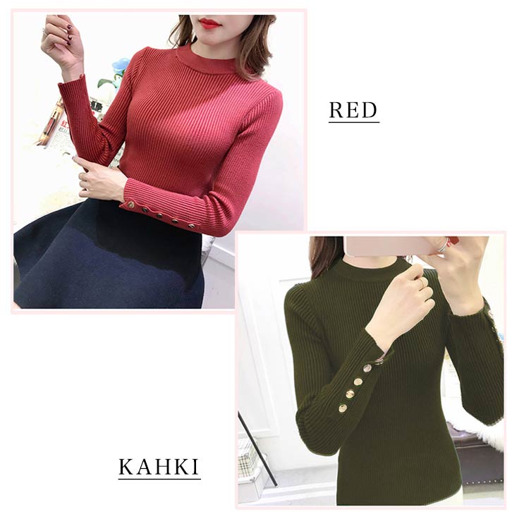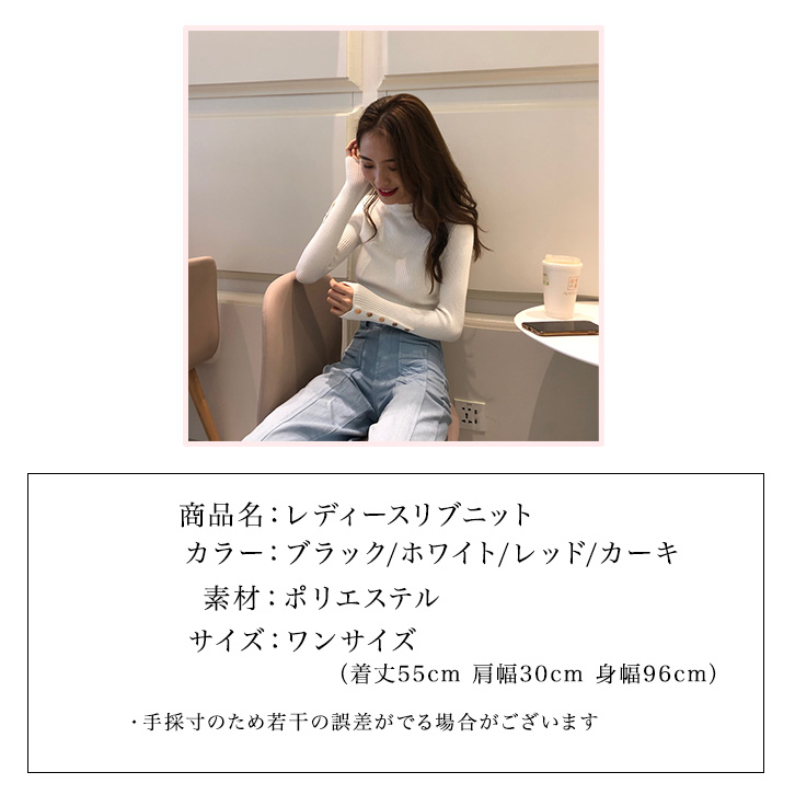 トップス 長袖 レディース リブニットトップス リブニット ボタン ゴールドボタン 大人かわいい シンプル 合わせやすい 着回し抜群 秋 冬 春 タイト 美シルエット 合わせやすい ブラック ホワイト レッド カーキ ワンサイズ