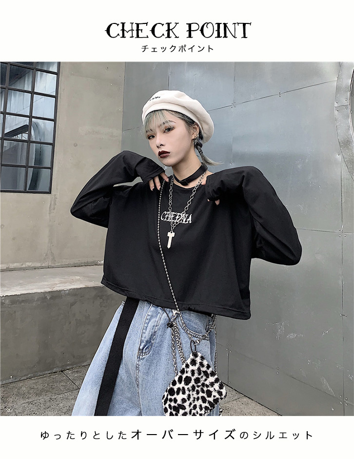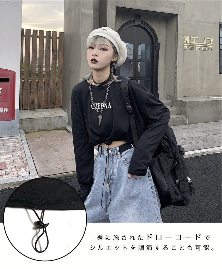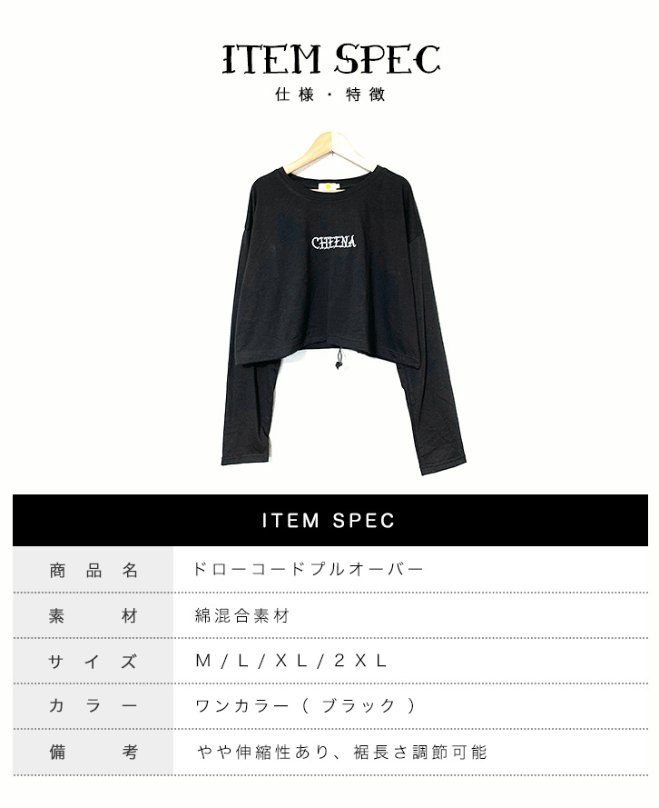プルオーバー トレーナー レディース 長袖 ショート丈トレーナー ショート丈 短め ショート丈プルオーバー トップス ドローコード ブラック ゆったりシルエット 脚長効果 おしゃれ ストリート ワンポイントロゴ入り ワンポイント