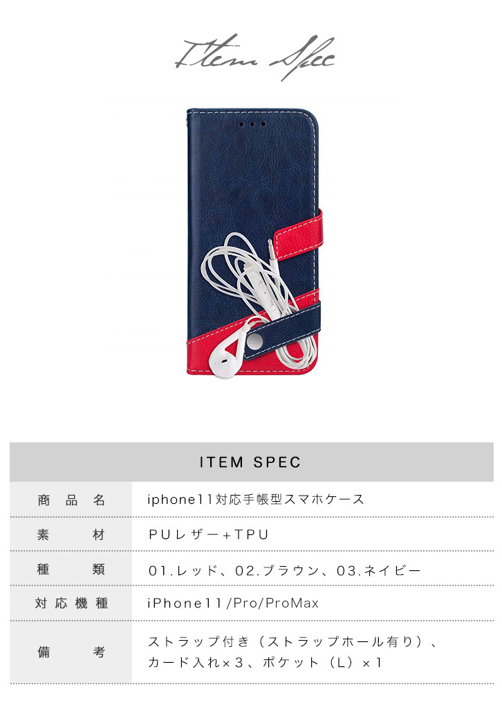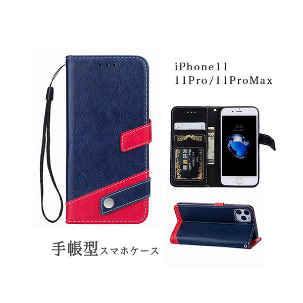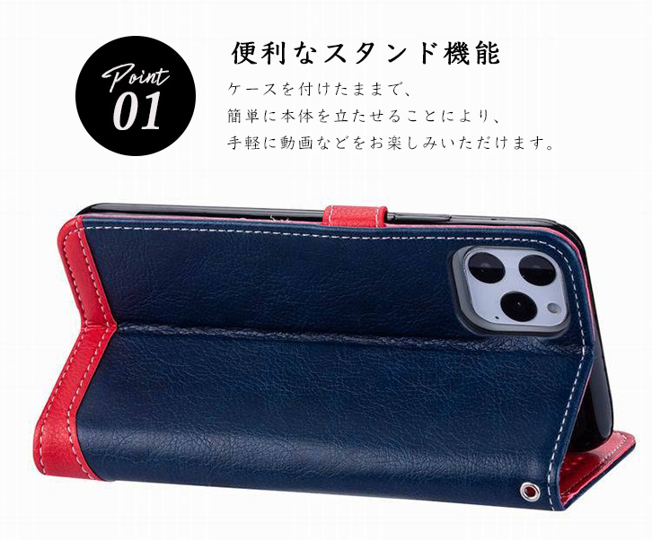 iPhoneケース iPhoneカバー ケース カバー 手帳型ケース 手帳型 iPhone11 iPhone11Pro iPhone11ProMAX スタンド機能 機能性抜群 実用性抜群 動画視聴 カード収納ポケット付き ストラップホール レッド ブラウン ネイビー