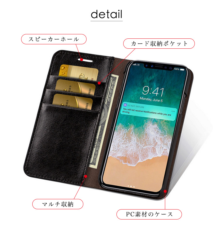 iPhoneケース iPhoneカバー 手帳型 シンプル 使いやすい 画面保護 傷つきにくい 使い心地抜群 上質質感 手に馴染む 機能性抜群 カード収納ポケット スピーカーホール フリーポケット PUレザー PC素材 赤 紺 黒