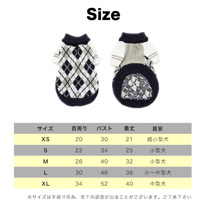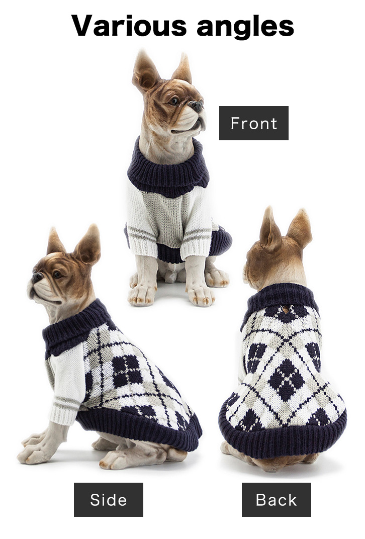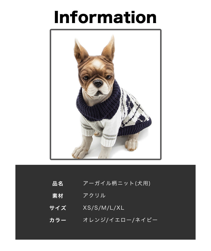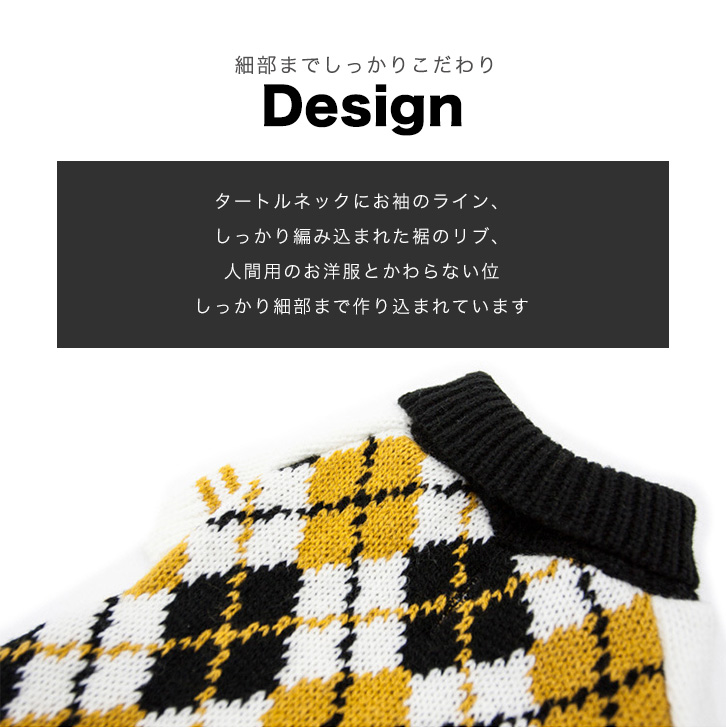 ドッグウェア 犬用服 犬服 ドッグ服 ニット アーガイル柄 ニット風ドッグウェア 超小型犬 小型犬 中型犬 あったか 秋 冬 防寒 暖かい おしゃれ アーガイル 菱形 チェック かわいい 裾リブ タートルネック オレンジ イエロー ネイビー