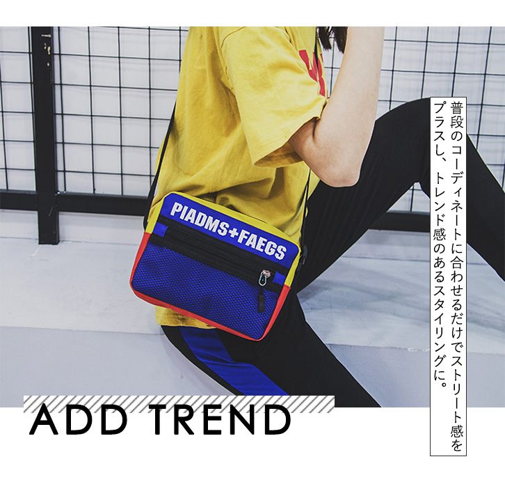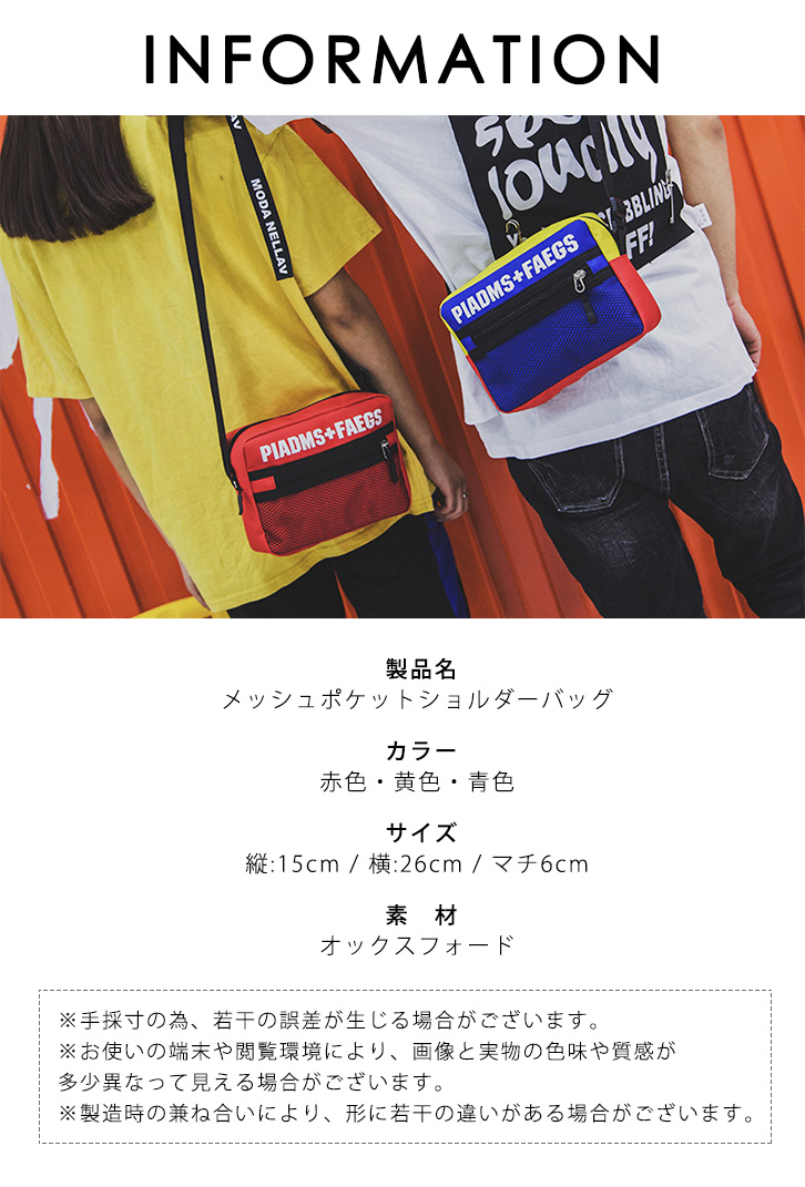 ショルダーバッグ バッグ ショルダー 肩掛けバッグ 斜め掛けバッグ 肩掛け 斜め掛け ビビットカラー おしゃれ 映え スポーティー ユニセックス レディース メンズ コンパクト デイリー トレンド メッシュポケット オシャレ