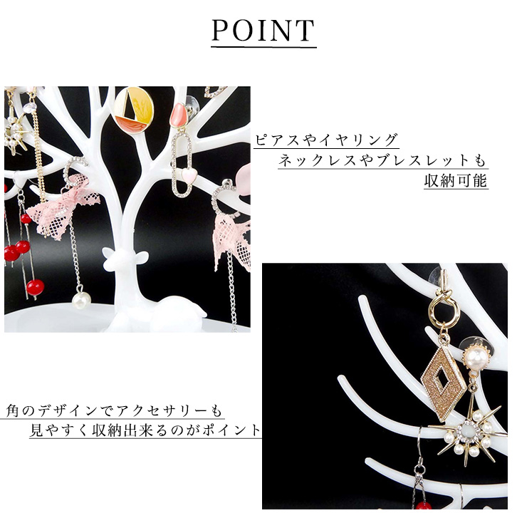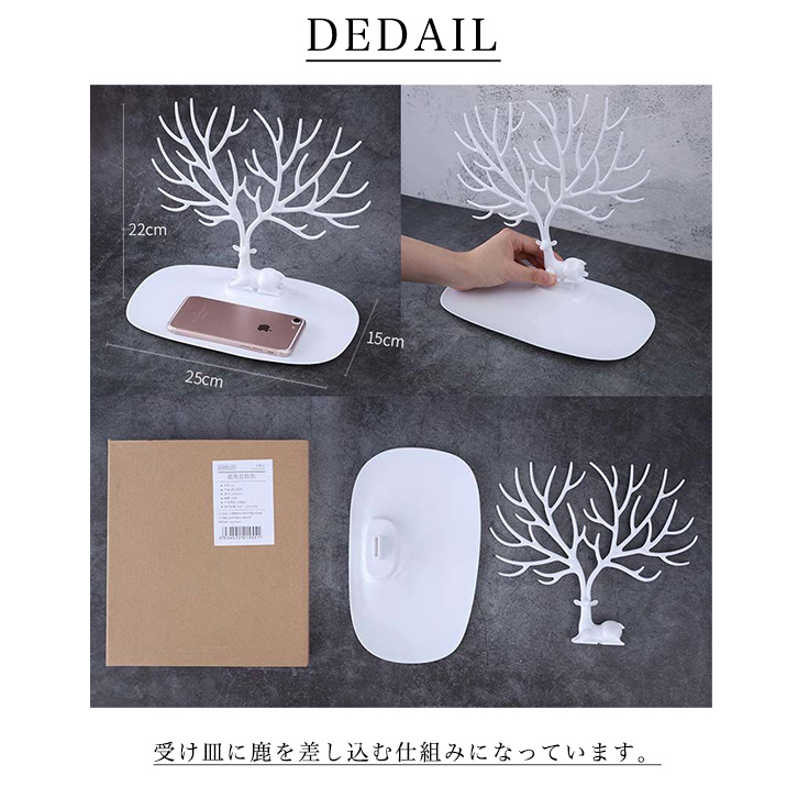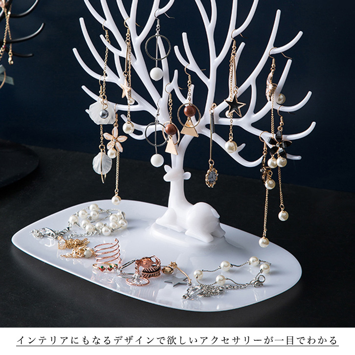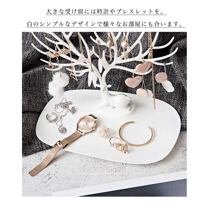 アクセサリースタンド ネックレススタンド アクセサリー収納 ジュエリースタンド アクセ ネックレス ジュエリー インテリア 鹿 おしゃれ 時計 フック ツリー風 ピアス 指輪 ブレスレット かわいい オシャレ 白 ホワイト 小物収納