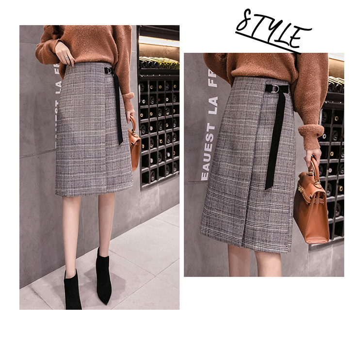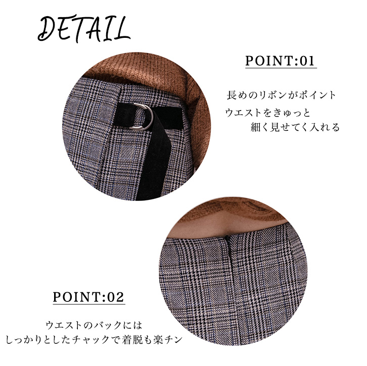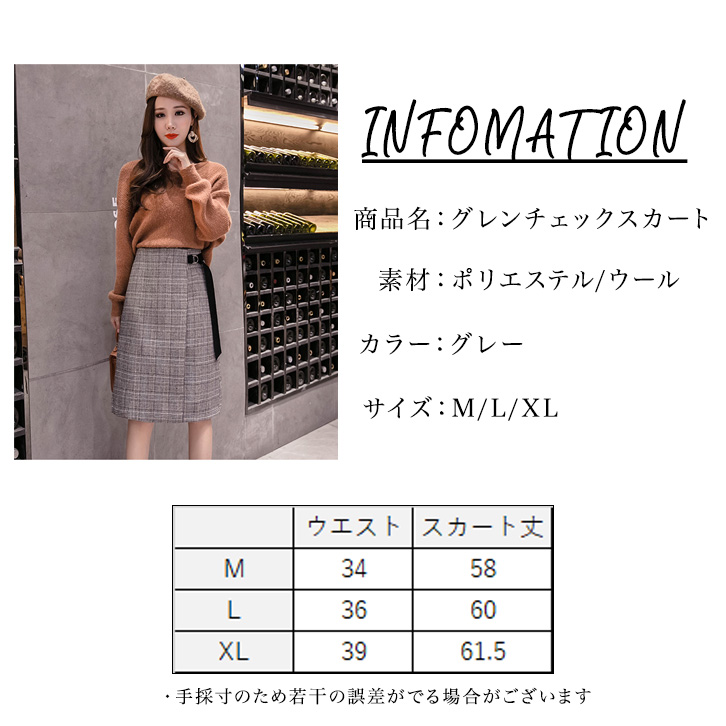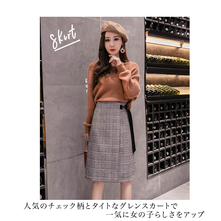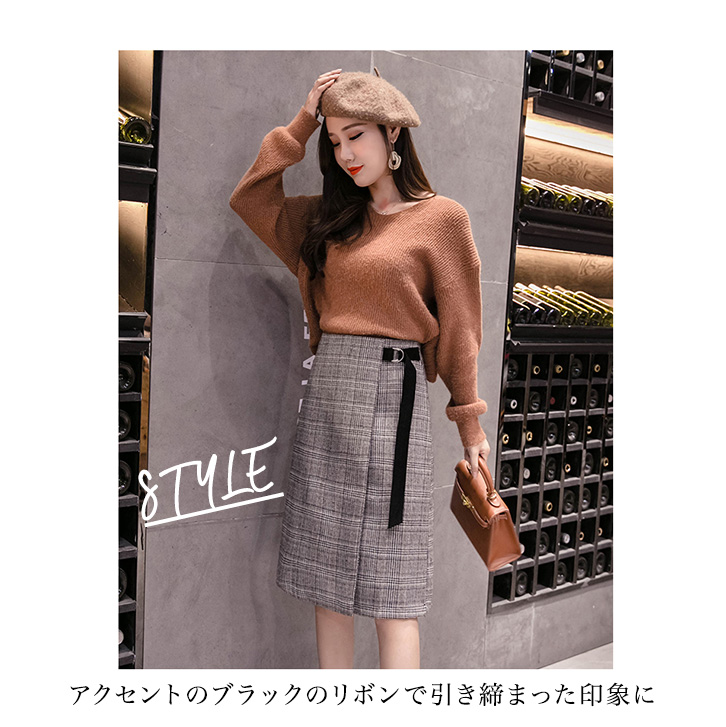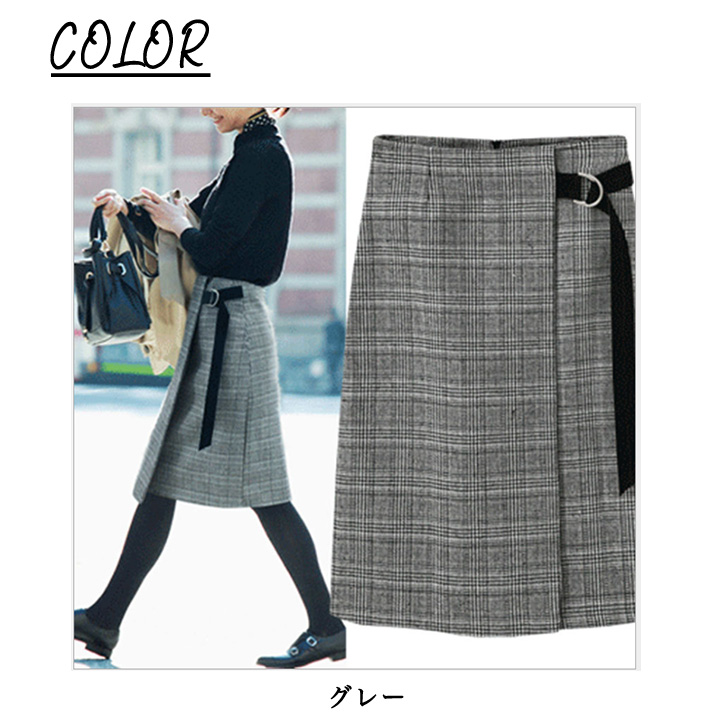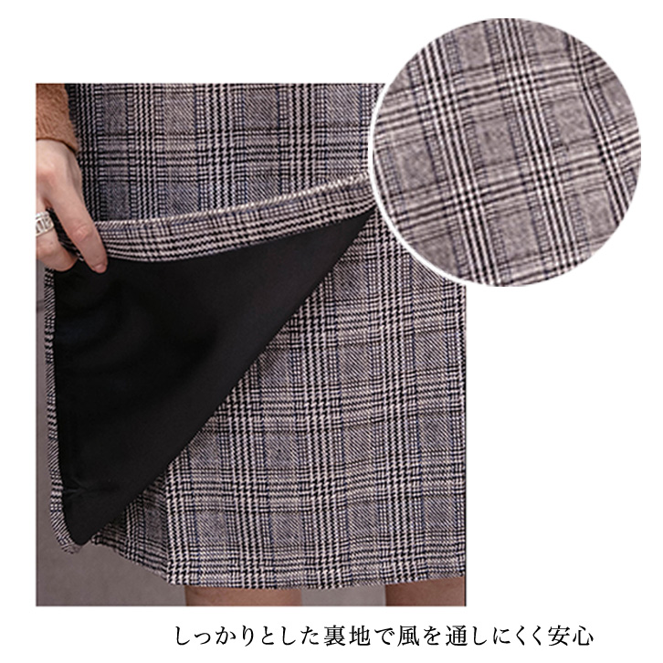 スカート レディース 膝丈 膝下 レディーススカート グレンチェックスカート グレンチェック ブラックリボン 細魅せ 細見せ 裏地付き グレー 着回し抜群 合わせやすい シンプル 秋 冬 春 チェック柄 チェック タイト 大人かわいい