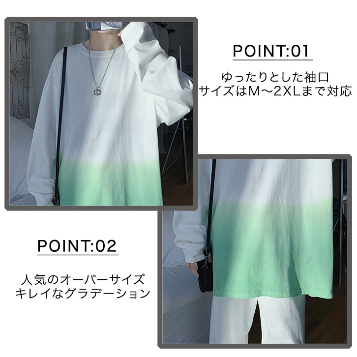 トップス Tシャツ 長袖 メンズ ロンT メンズロンT ロングTシャツ グラデーション グラデ おしゃれ 着心地抜群 着回し抜群 合わせやすい カジュアル ビッグシルエット トレンド オシャレ デイリー サイズ豊富 モード シンプル