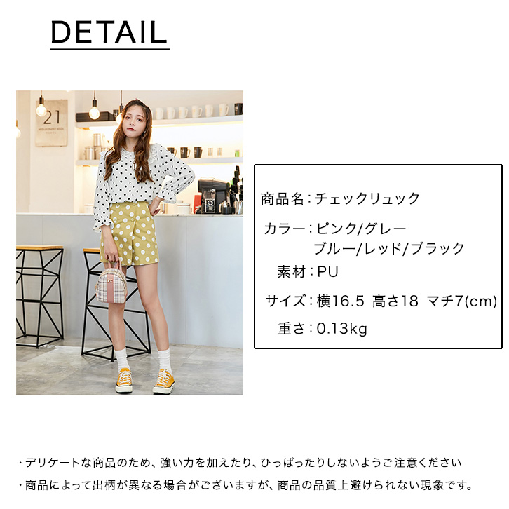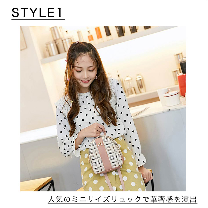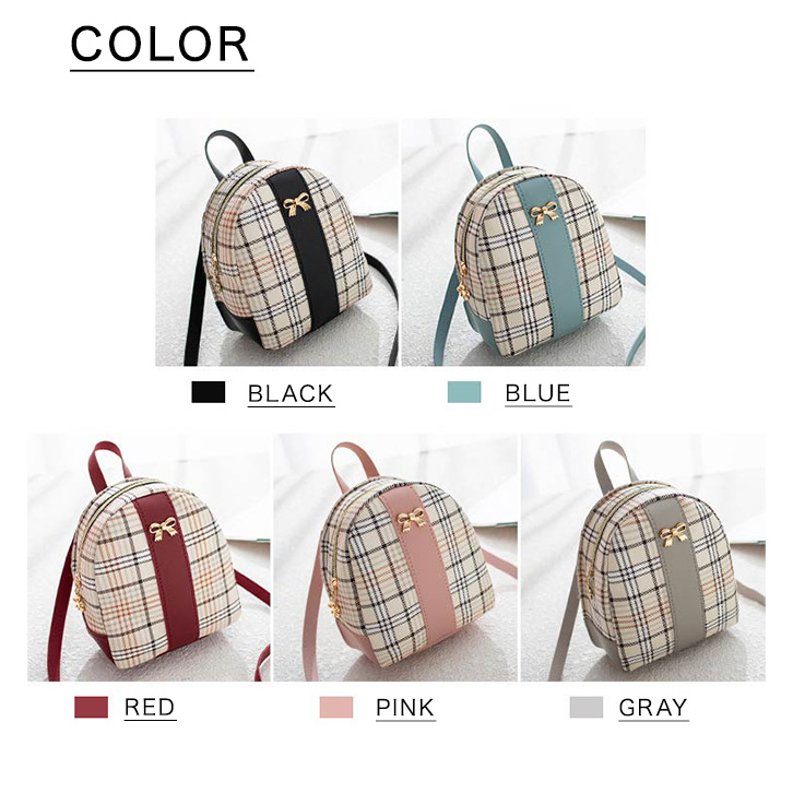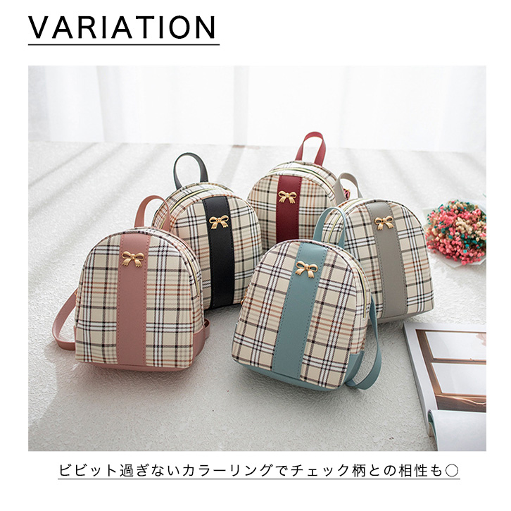 リュック バックパック レディース レディースリュック ミニリュック ミニサイズ コンパクト 収納力抜群 チェックリュック チェック柄 おしゃれ 可愛い キュート 大人かわいい リボン ミニ カラー豊富 イヤホンホール ファスナー開閉 デイリー