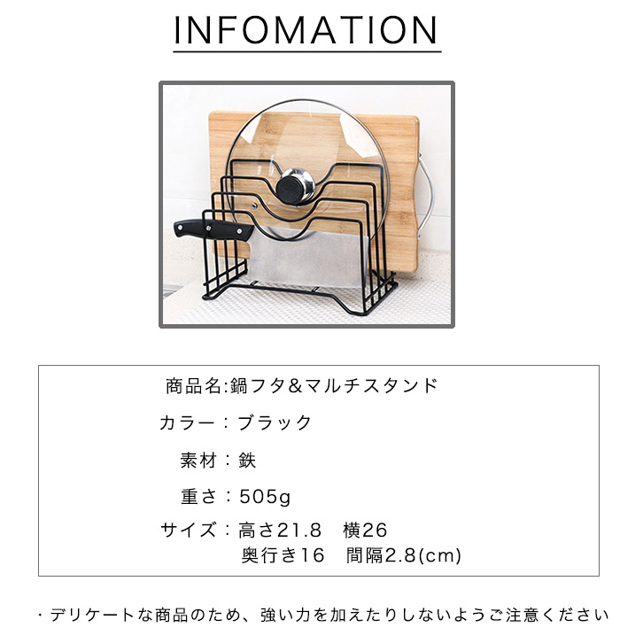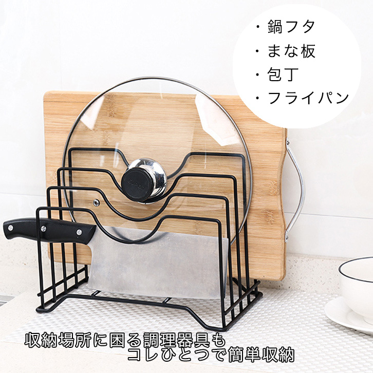 マルチスタンド スタンド 台所用スタンド まな板スタンド 鍋フタスタンド まな板立て 鍋フタ立て 台所用品 キッチン用品 キッチン用スタンド ブラック 収納スタンド 黒色 フライパン収納 キッチン 安定感抜群 収納 すっきり収納 水洗い可能