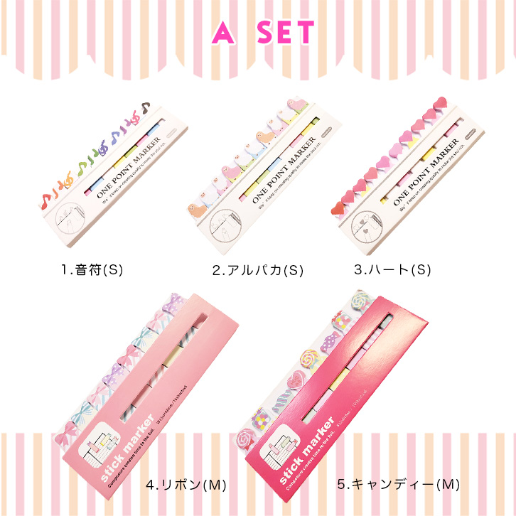 Aセット/音符(S)、アルパカ(S)、ハート(S)、リボン(M)、キャンディー(M)
