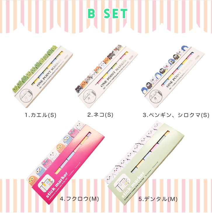 付箋 ふせん かわいい 付箋セット アニマル ハート リボン 文房具 コンパクト スティックマーカー ワンポイントマーカー 5種類1セット Sサイズ Mサイズ 小さいサイズ 大きいサイズ おもしろい 文具 学校 オフィス 付箋紙 セット