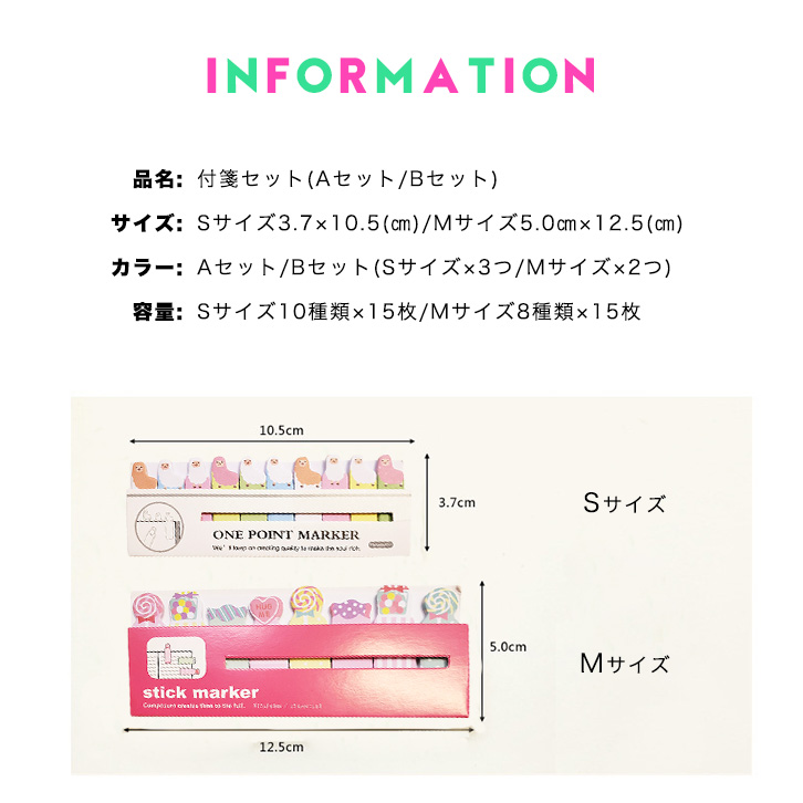 【セット内容】Sサイズ10種類×15枚/Mサイズ8種類×15枚
