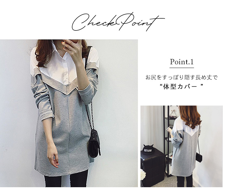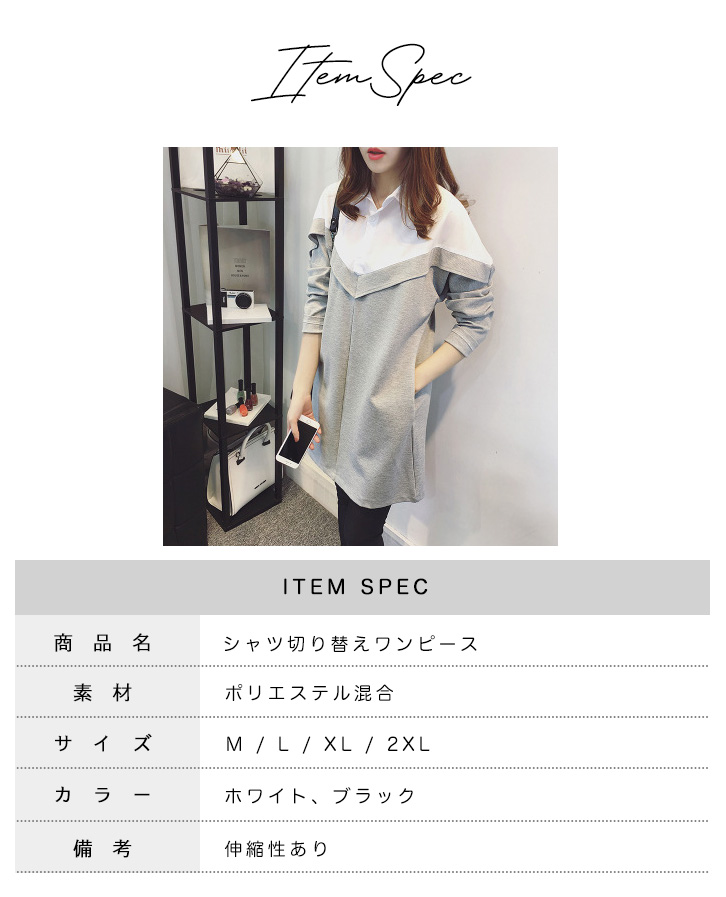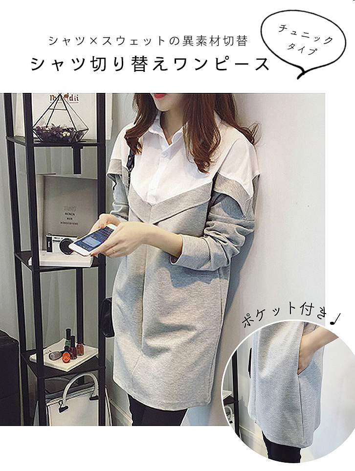ワンピース レディース レディースワンピ 膝上丈 ワンピ バイカラー 切り替えワンピース ツートンカラー バイカラーワンピース チュニックタイプ ポケット付き シャツ スウェット 体型カバー スタイルアップ効果 大人かわいい
