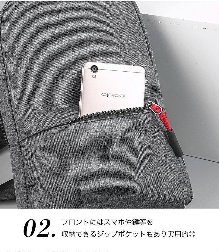 またフロント部分にはジップポケットもあるので