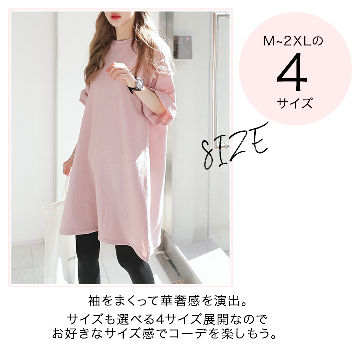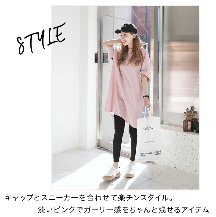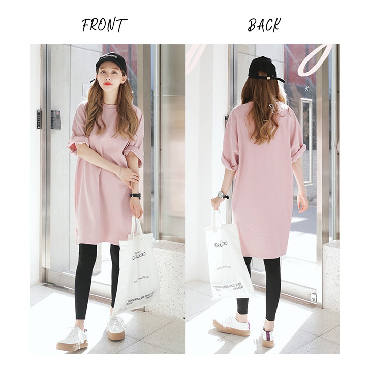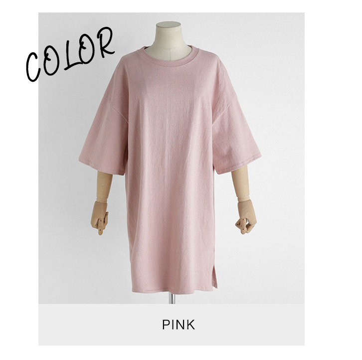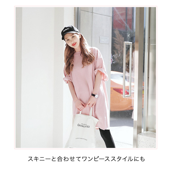 Tシャツ レディース シャツ トップス 七分丈 レディースTシャツ ピンク ロング丈 ワンピース ミニワンピ ピンク スリット入り 動きやすい ビッグシルエット 可愛い おしゃれ カジュアル ガーリー 大人カジュアル 大人かわいい