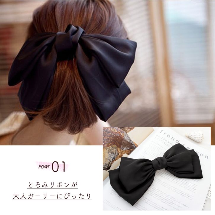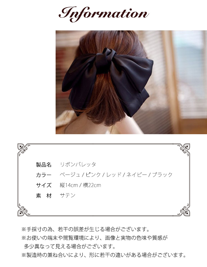 バレッタ 髪留め ヘアバレッタ リボンバレッタ 大きめリボン ヘアアレンジ ヘアー レディース 可愛い リボン おしゃれ カラー豊富 ベージュ ピンク レッド ネイビー ブラック 大人かわいい ガーリー とろみ ヘアアクセサリー