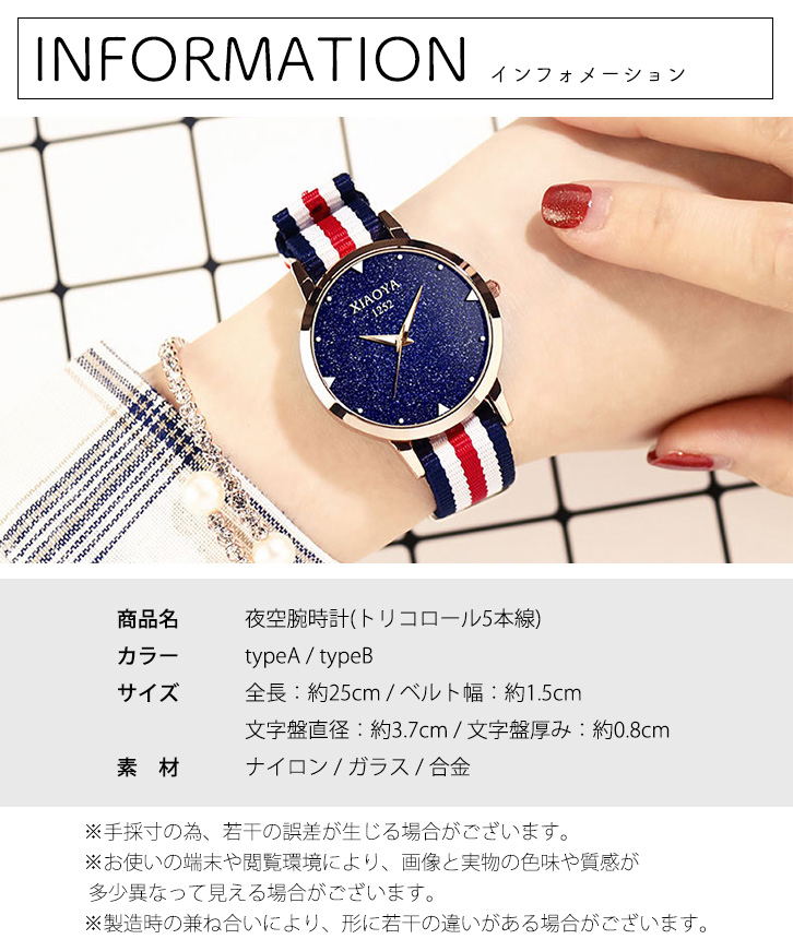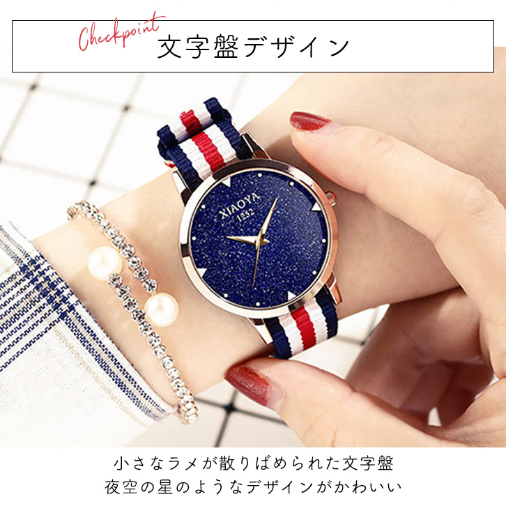 腕時計 レディース レディース腕時計 レディース時計 時計 ウォッチ レディースウォッチ トリコロール腕時計 星空ウォッチ トリコロール 夜空 星空 キラキラ ラメ カジュアル おしゃれ 蓄光針 発光 光る 大人カジュアル
