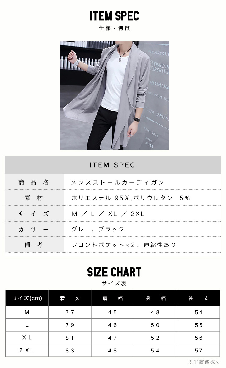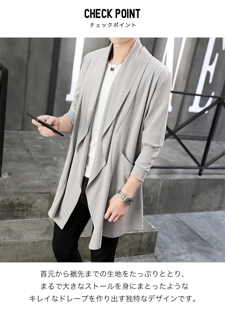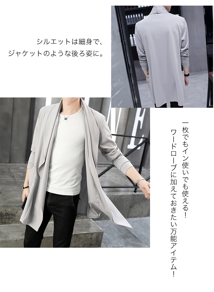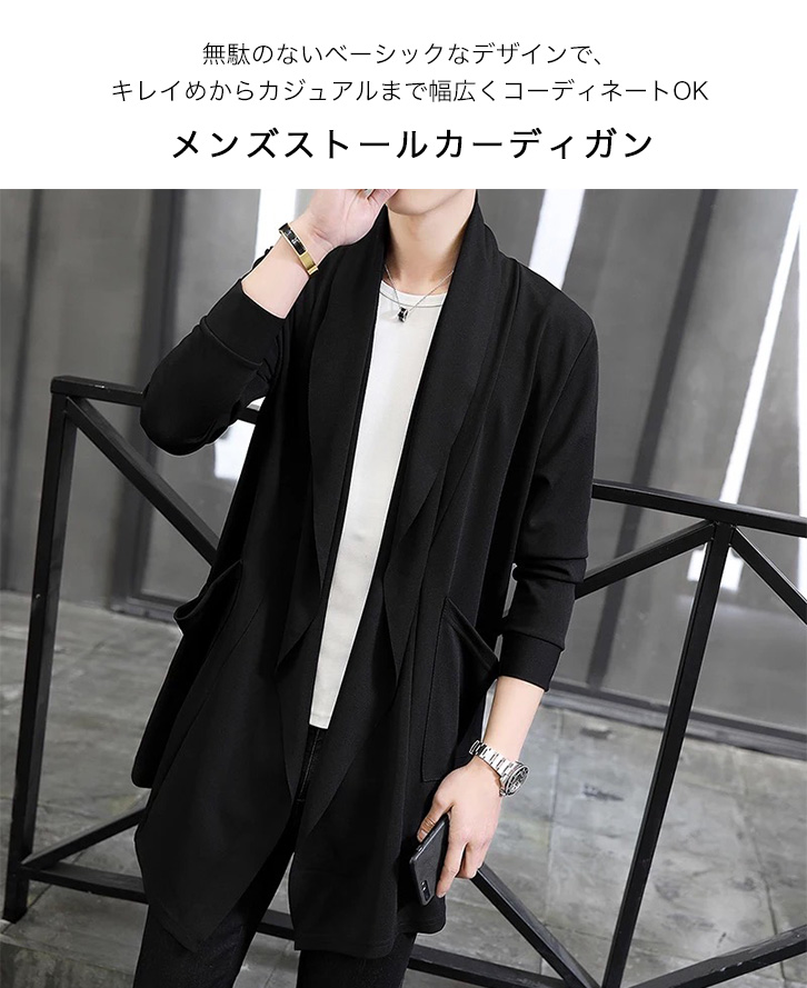 カーディガン メンズカーディガン メンズ ストールカーディガン 羽織り 春 秋 シンプル 着回し抜群 合わせやすい きれいめ カジュアル 変形シルエット 細身 ホワイト ブラック おしゃれ ストール風 ドレープ ポケット付き