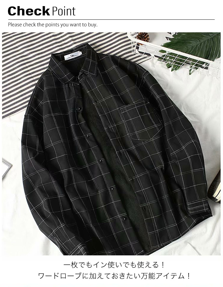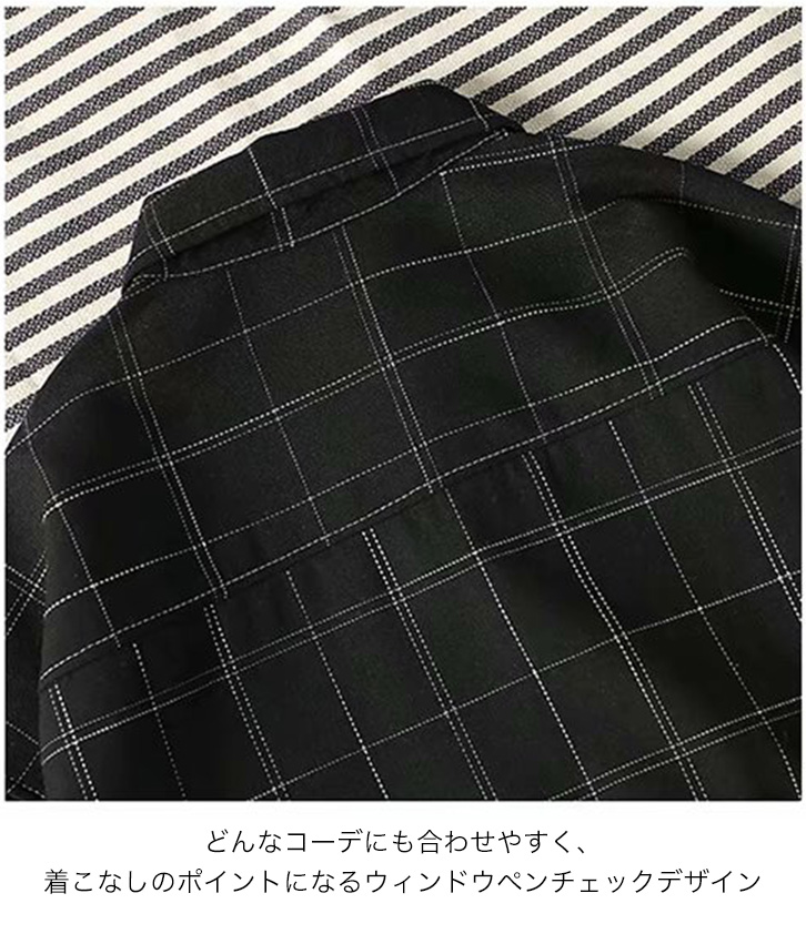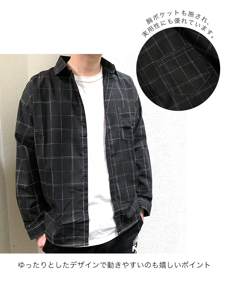 シャツ 長袖 メンズ メンズシャツ 長袖メンズシャツ 秋 春 チェック柄 ブラック シンプル 着回し抜群 重ね着 おしゃれ 合わせやすい ウィンドウペンチェック 胸ポケット付き ゆったり サイズ豊富 黒 カジュアル ゆったり