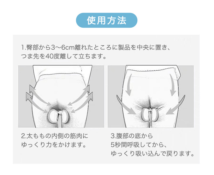 1.臀部から3~6cm離れたところに製品を中央に置き