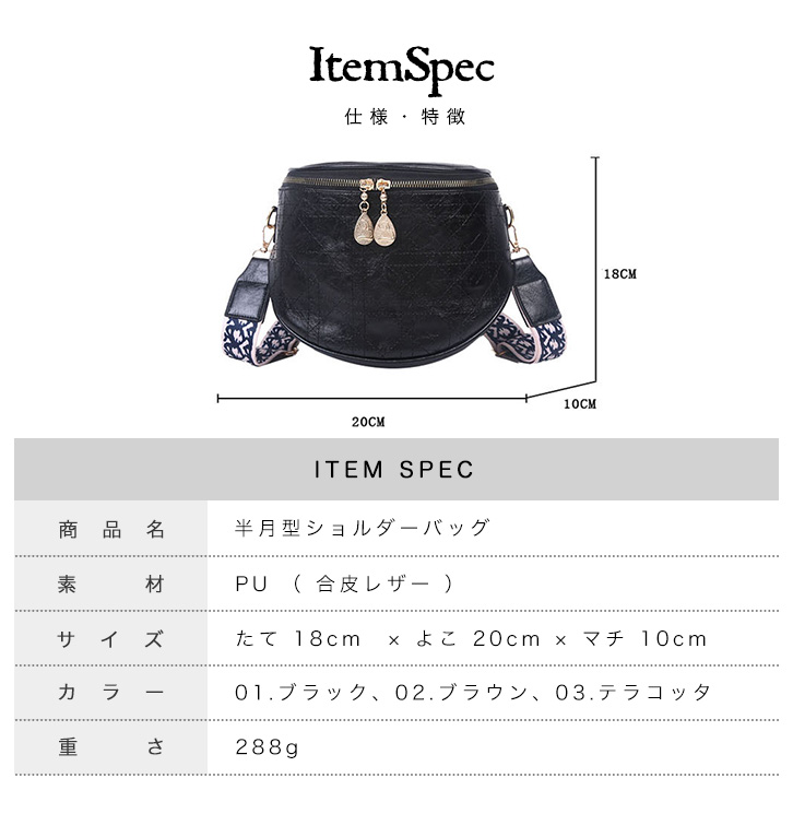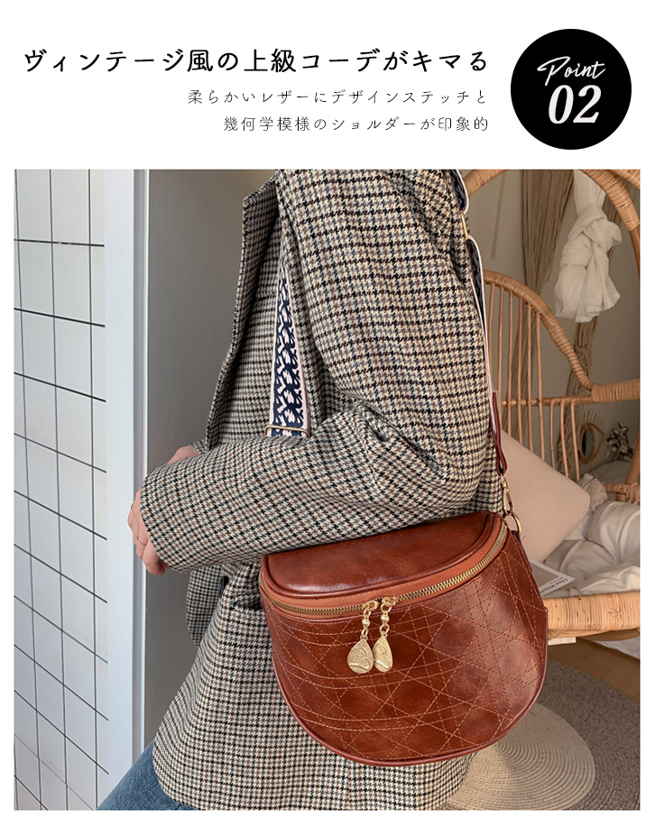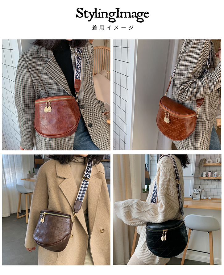 ショルダーバッグ レディース ショルダー バッグ レディースバッグ レディースショルダーバッグ 斜め掛け 肩掛け 2way 半月型 おしゃれ ダブルジッパー ヴィンテージ風 幾何学模様 収納力抜群 デイリー ブラック ブラウン テラコッタ