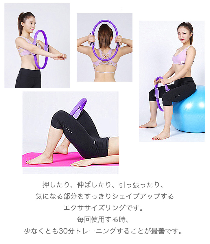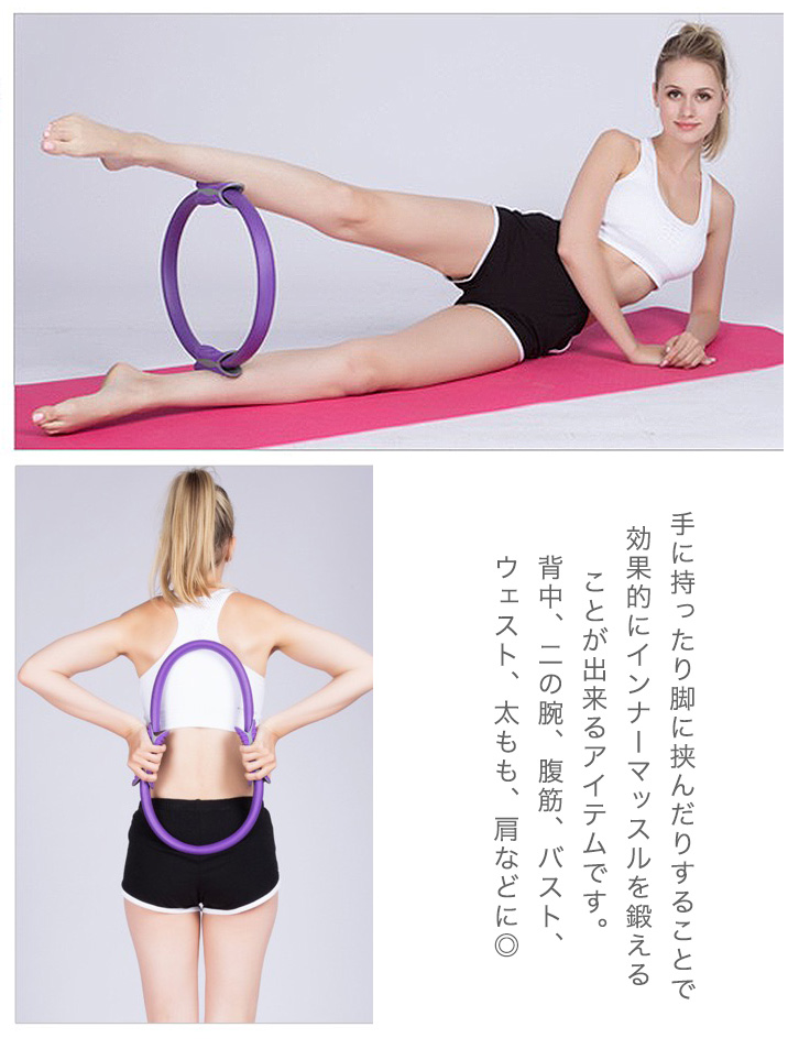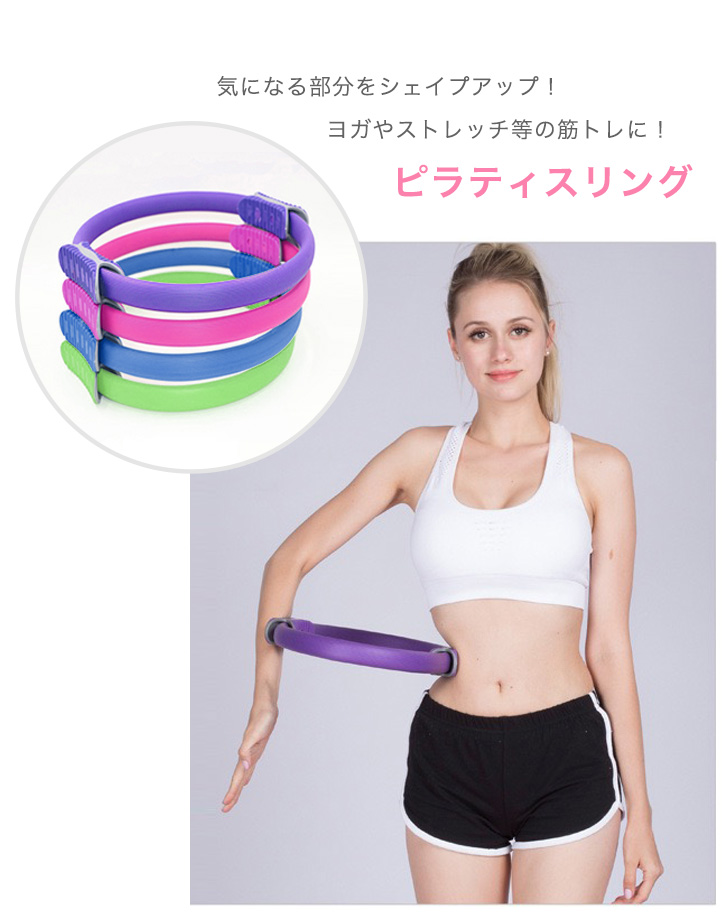 ピラティスリング リング ヨガ ストレッチ 筋トレ トレーニング シェイプアップ 運動 軽量 弾力 滑り止め付き 部分痩せ 背中 二の腕 腹筋 バストアップ ウエスト痩せ 太もも痩せ ダイエット 押す 伸ばす 引っ張る グリーン ブルー ピンク パープル