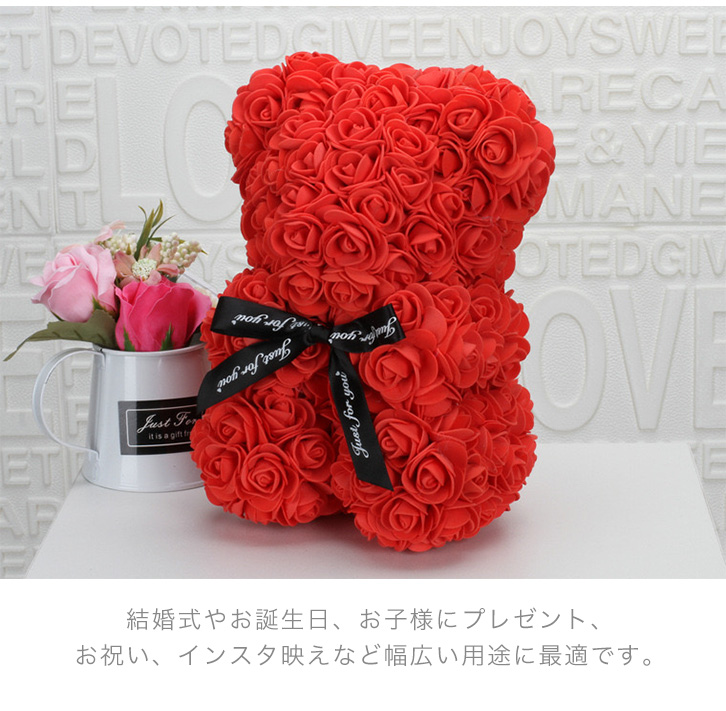 フラワードール ローズベア フラワーベア くま ぬいぐるみ 造花 バラ お花 置き型 置き型フラワードール 無臭 インテリア かわいい キュート 結婚式 誕生日 プレゼント お祝い バースデー 記念日 SNS映え ピンク レッド ハート リボン