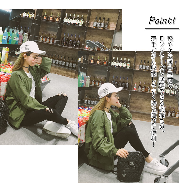 ブルゾン ジャケット レディース ベーシック 定番 羽織り ヘビロテアイテム 秋冬 秋 冬 着回し抜群 シンプル 合わせやすい 軽い 薄手素材 ロングシーズン ファスナー フェイクポケット 大人カジュアル おしゃれ グリーン