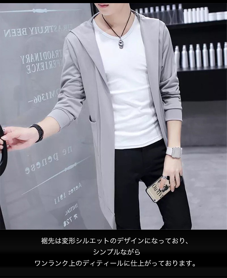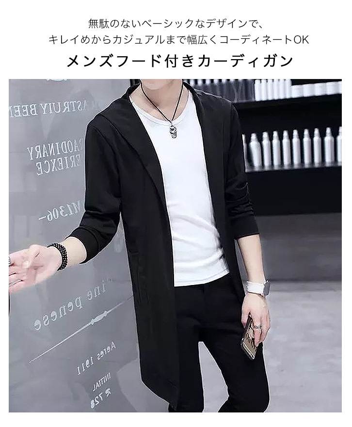 カーディガン メンズ カーデ メンズカーディガン 長袖 メンズカーデ フード付き 羽織り ベーシック カジュアル きれいめ 着回し抜群 シンプル 合わせやすい 着心地快適 伸縮性 変形シルエット 美シルエット 大人カジュアル ホワイト ブラック