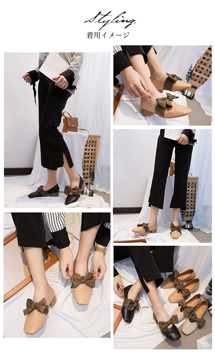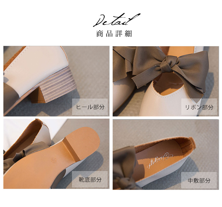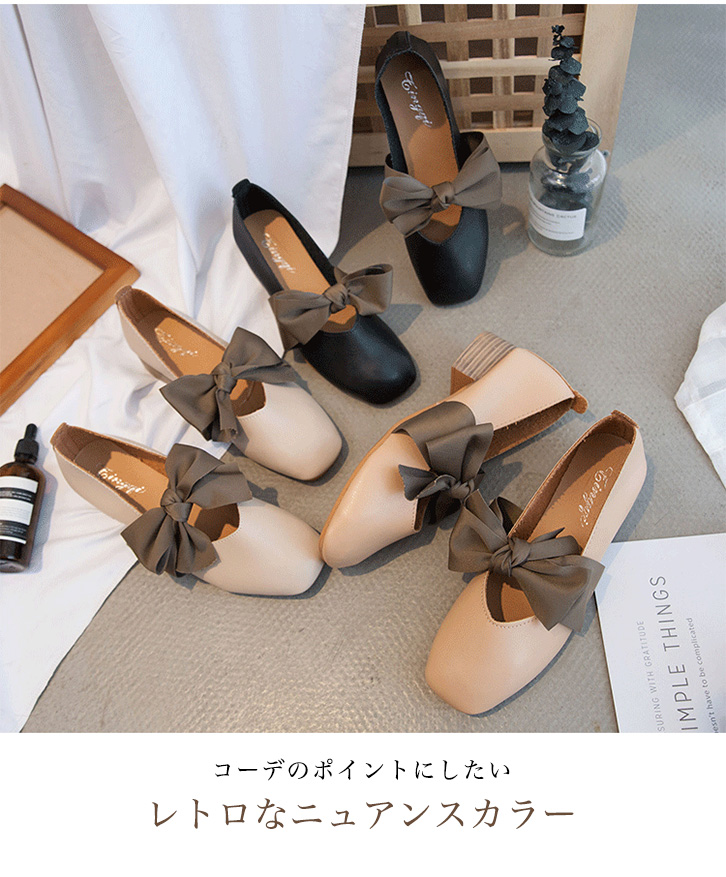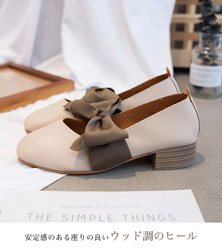 パンプス レディース 靴 シューズ リボンパンプス リボンシューズ ローヒール 女性 上品 大人かわいい おしゃれ かわいい合皮レザー 安定感 ウッド調ヒール レトロ クラシカル キュート 大きめリボン アイボリー ベージュ ブラック ヒール歩きやすい