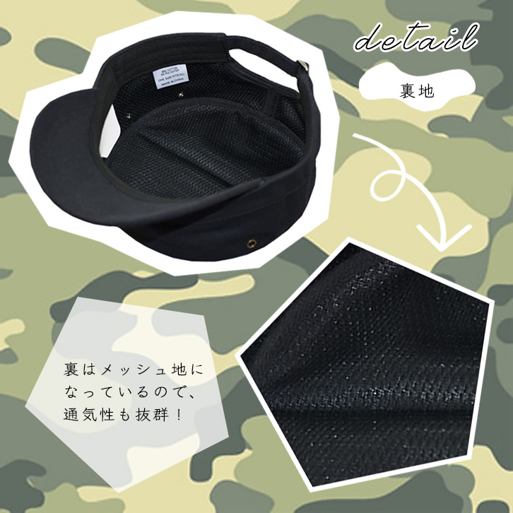キャップ 帽子 ミリタリーキャップ メンズ レディース ユニセックス 男女兼用 ぼうし 男性 女性 ワークキャップ 3サイズ シンプル 合わせやすい ベルト調節可能 サイズ調整 裏地メッシュ 通気性抜群 快適 オールシーズン