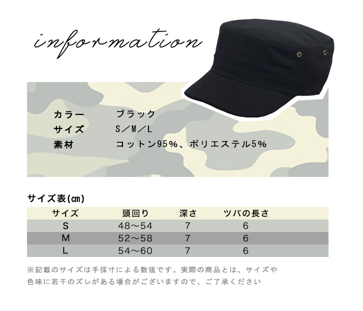 無地で合わせやすい定番ミリタリーキャップ♪