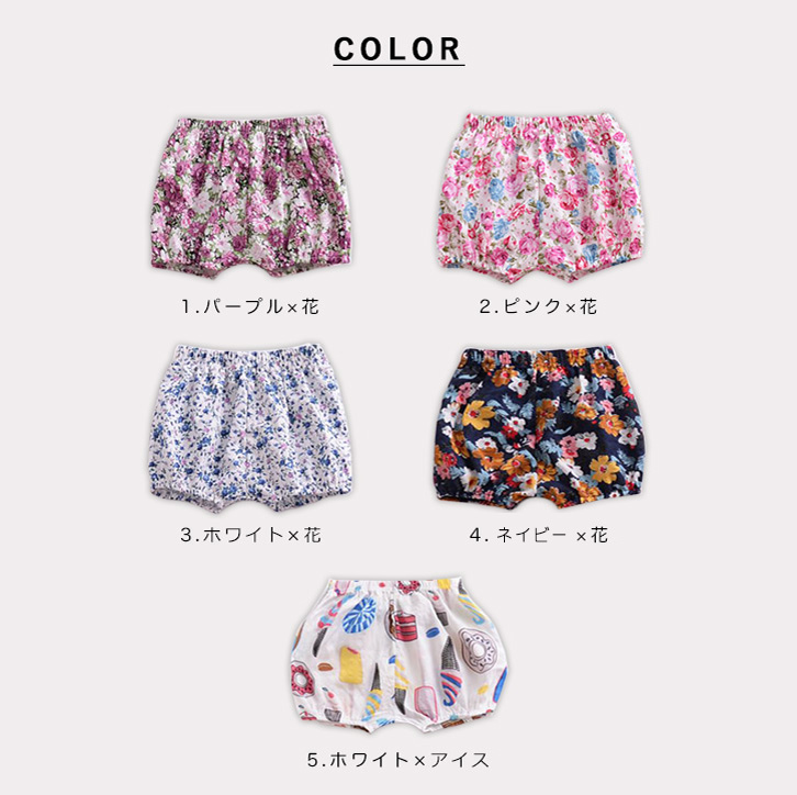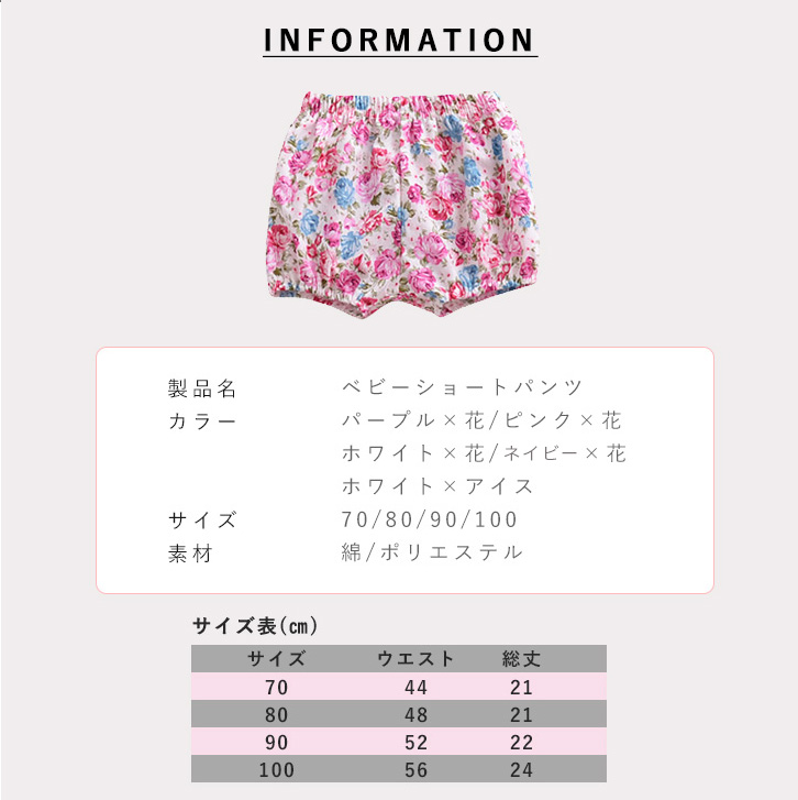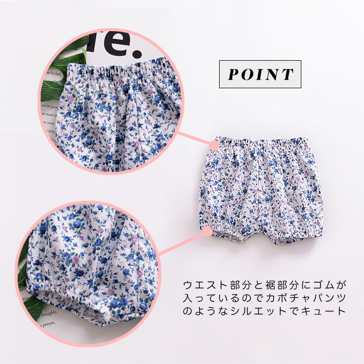 ベビーショートパンツ ガールズ 女の子 赤ちゃん ベビー ショートパンツ ショート丈 花柄 フラワー かわいい キュート 通気性抜群 ルームウェア 夏 ウエストゴム 裾ゴム かぼちゃパンツ