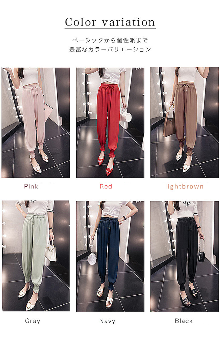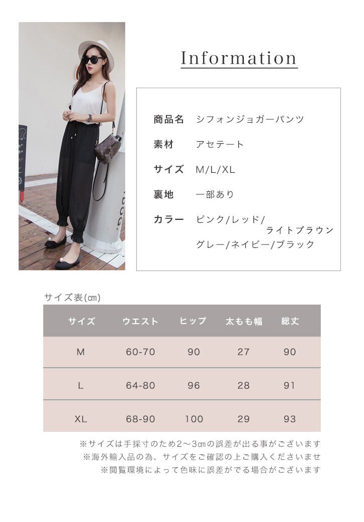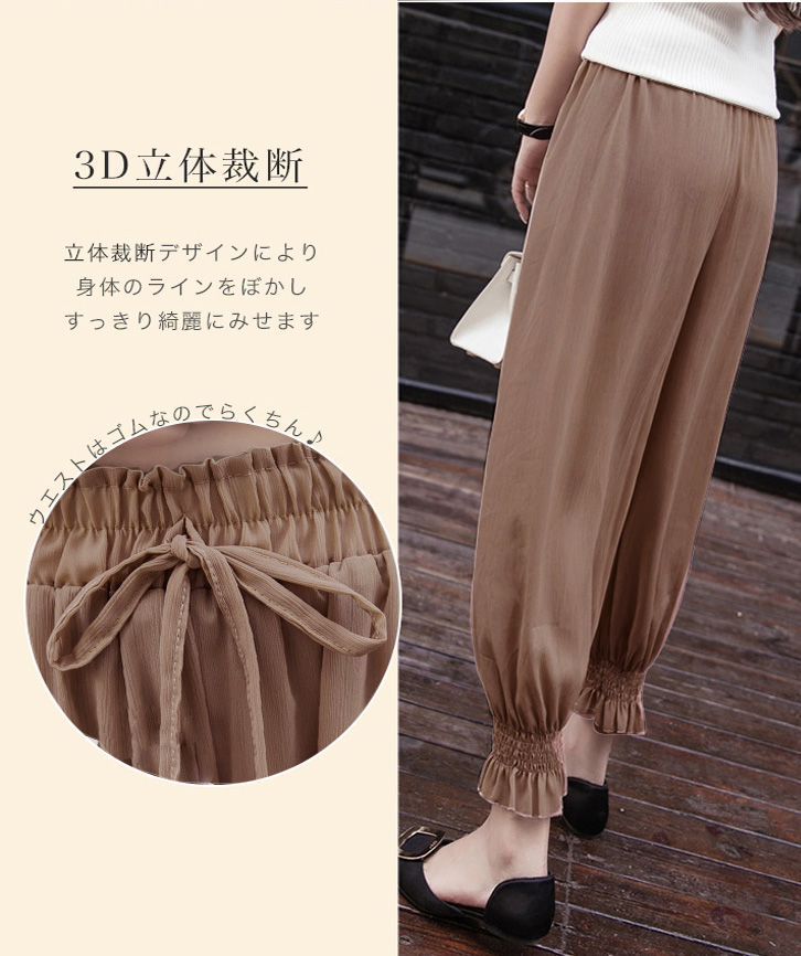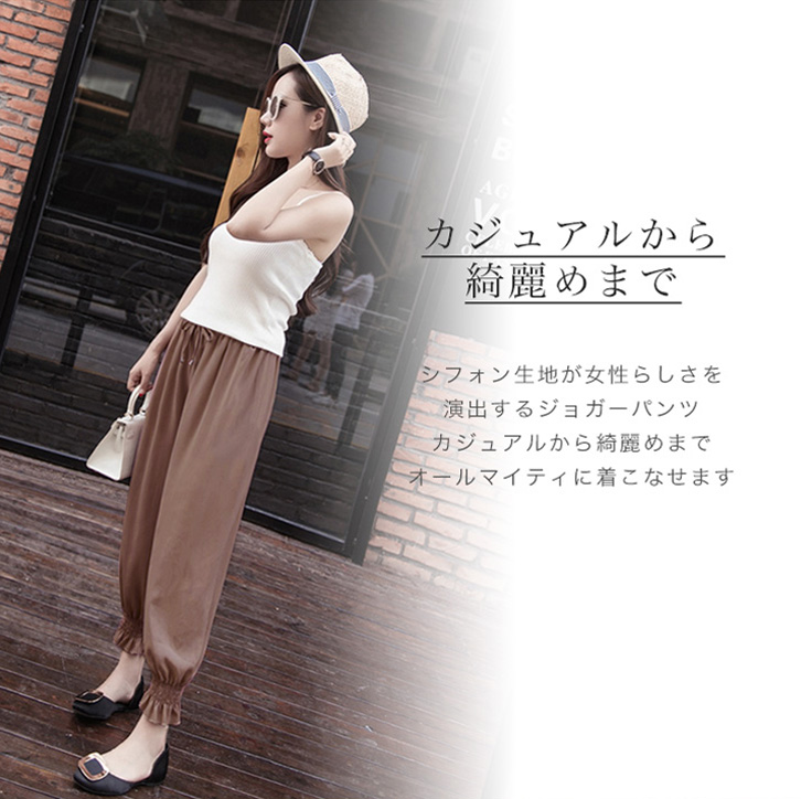 シフォンワイドパンツ ジョガーパンツ レディース カジュアル シフォン きれいめ 脚長効果 足首細見せ ベーシック ワイド 大人カジュアル シンプル ウエストゴム 裏地付き 女性らしい オールマイティ 綺麗