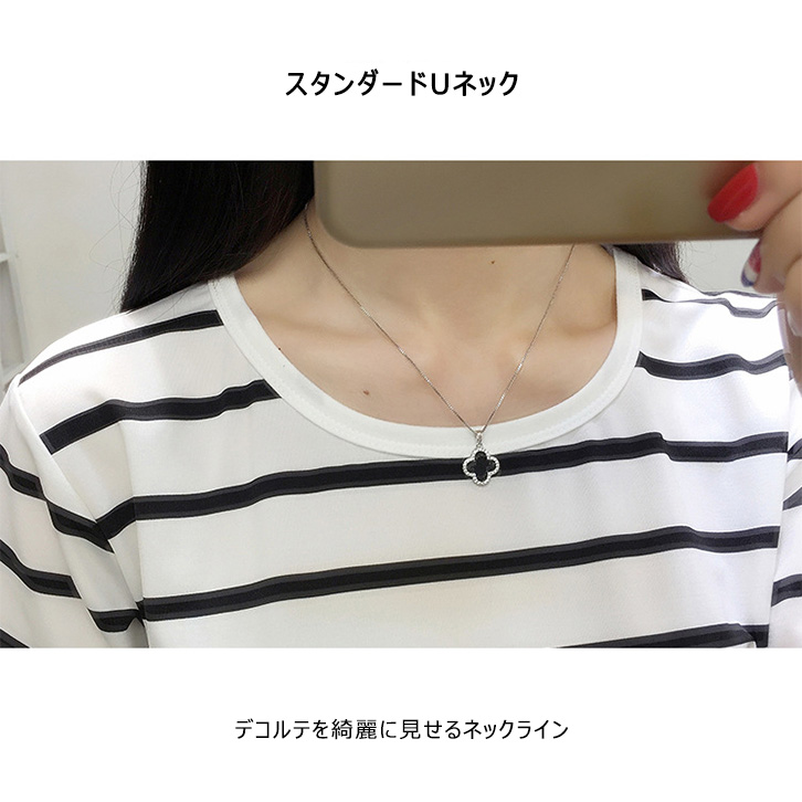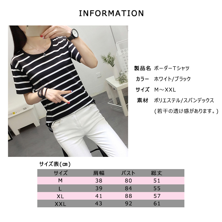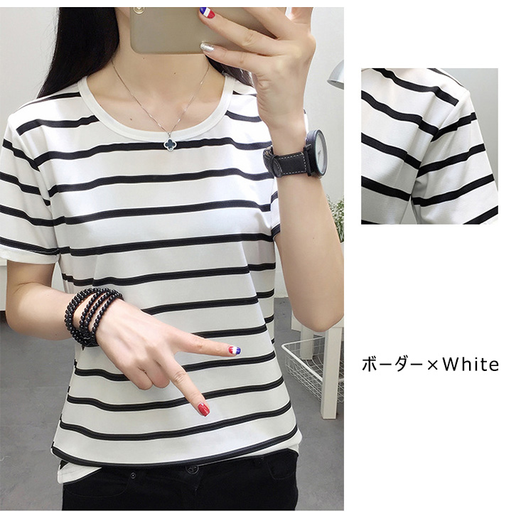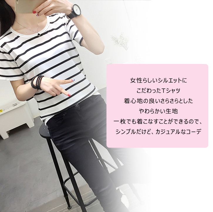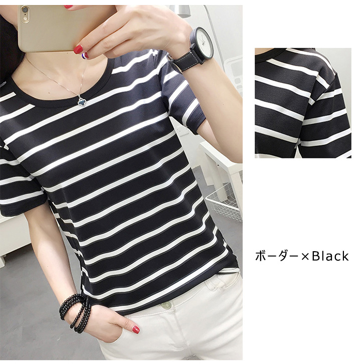 カットソー レディース 半袖 白 黒 春 夏 春夏 チュニック ゆったり トップス ボーダー tシャツ ブラック ホワイト クルーネック Uネック ボーダートップス 半袖チュニック カットソーチュニック