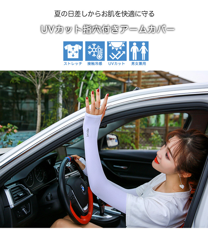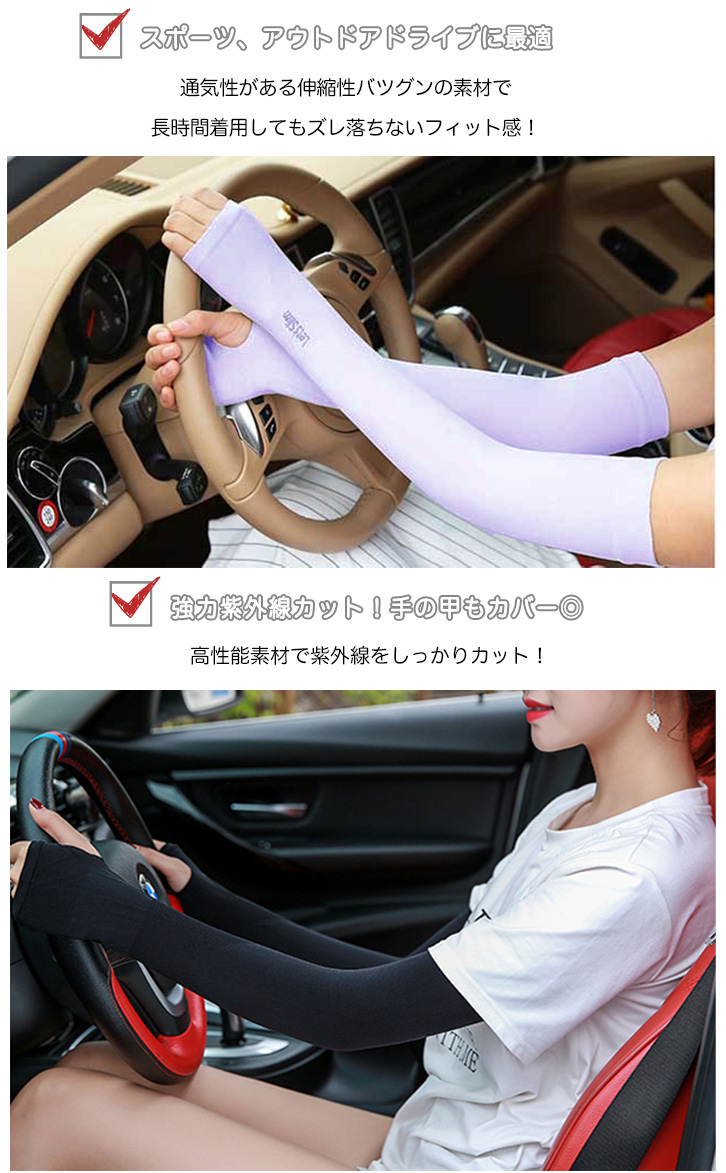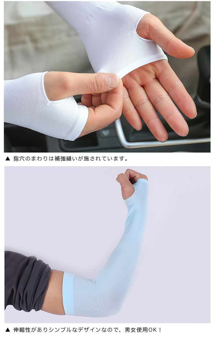 アームカバー UVカット 指穴付き 紫外線対策 日焼け対策 接触冷感 紫外線カット 男女兼用 ストレッチ さらさら 着心地抜群 スポーツ アウトドア 自転車 運転 車 バイク カラー豊富 伸縮性抜群