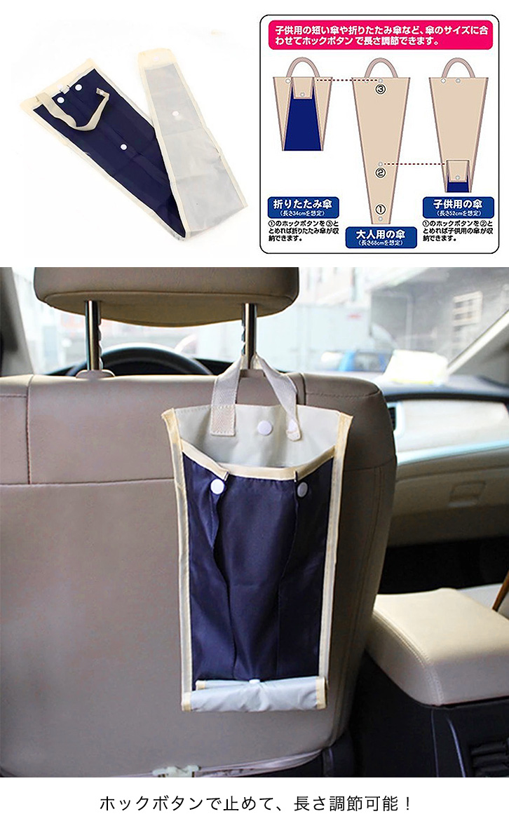 傘ホルダー 傘ケース アンブレラケース 車用 車 収納ホルダー 傘収納ホルダー 雨傘ホルダー 雨傘 折り畳み傘 子供用傘 長さ調節可能 コンパクト収納可能 ネイビー 雨 梅雨 レイングッズ カー用品 傘入れ 簡単装着 簡単水抜き